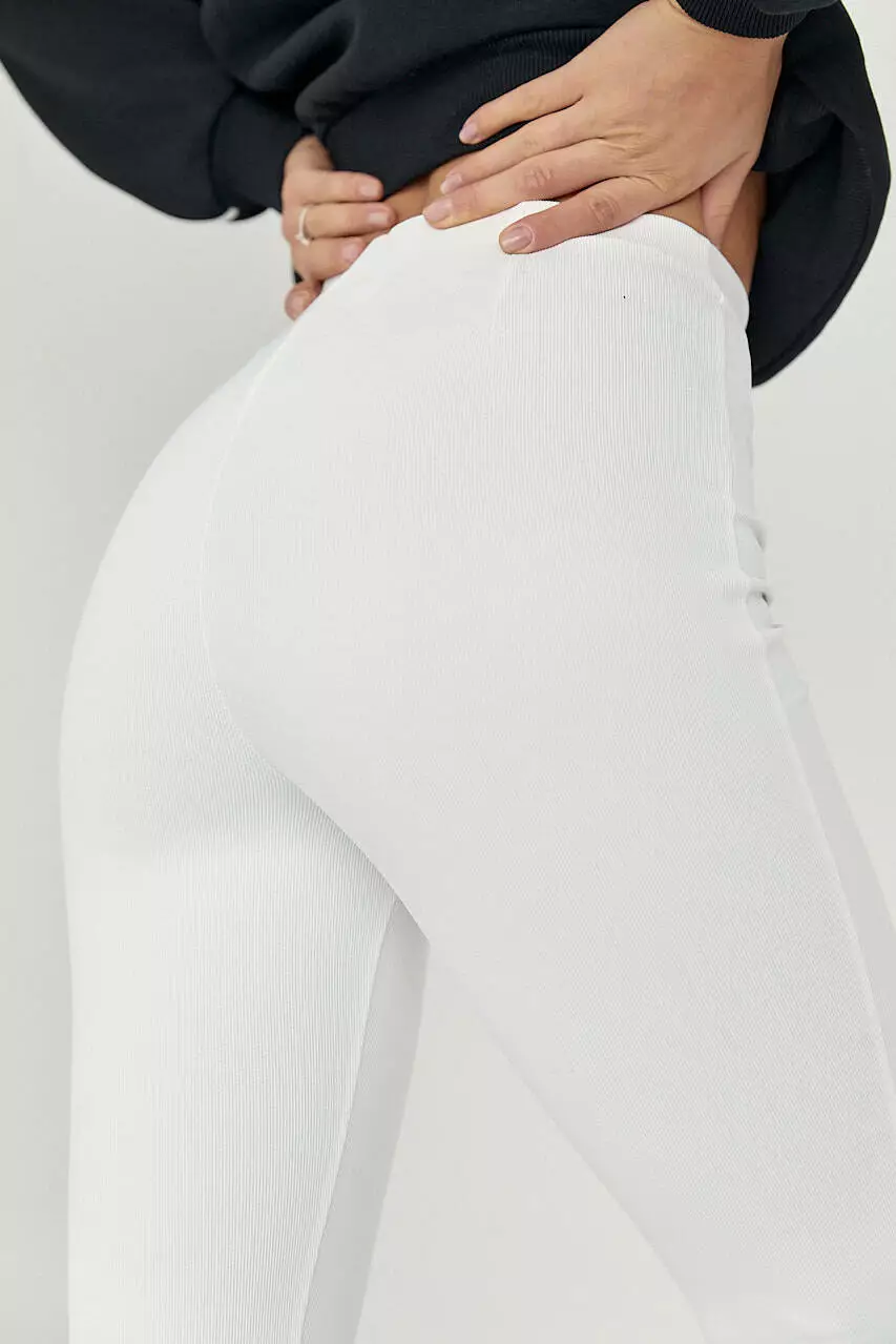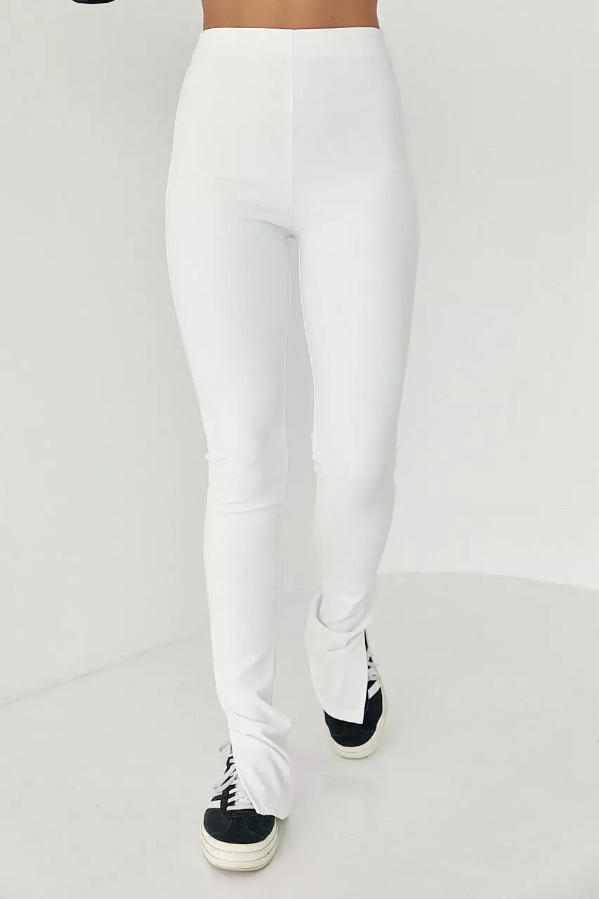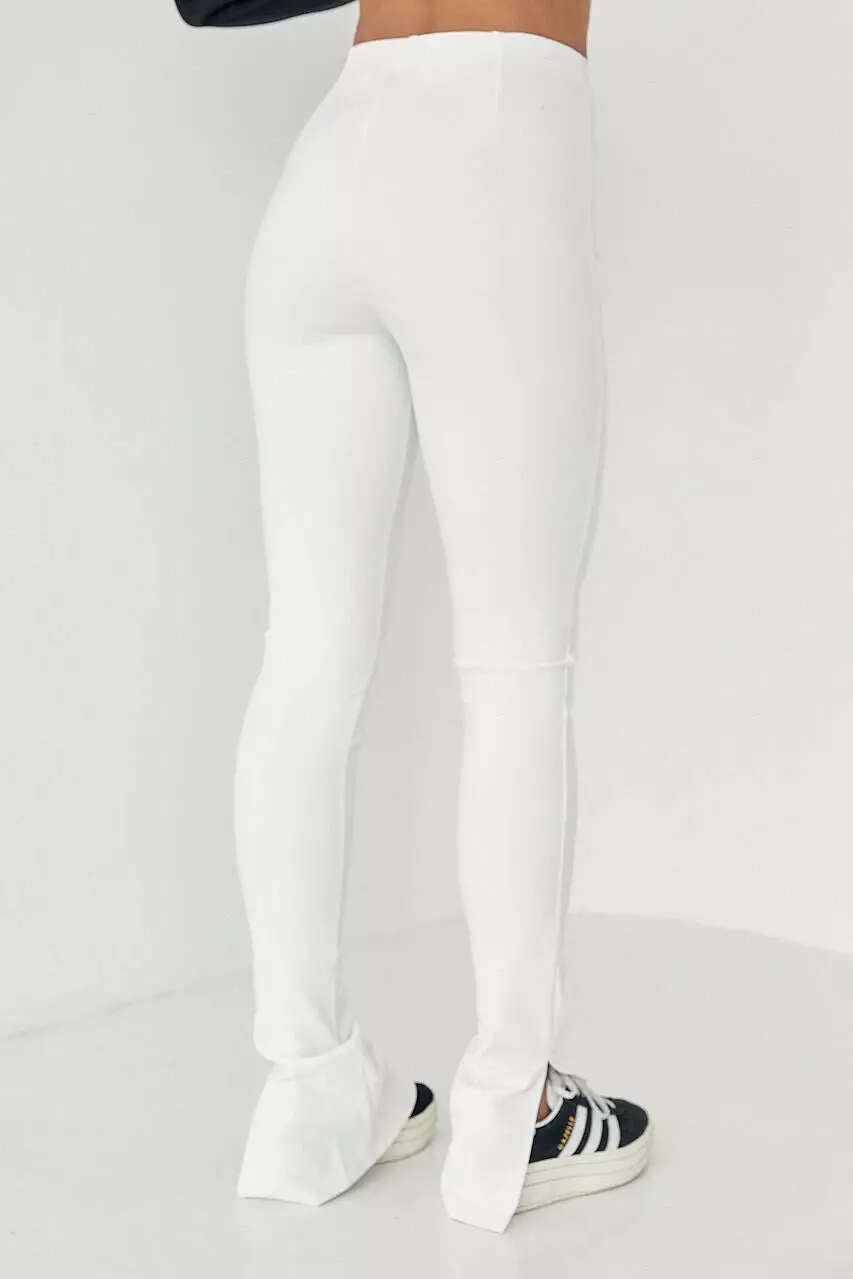 Женские лосины из эластичного трикотажа с разрезами - молочный цвет, M (есть размеры)