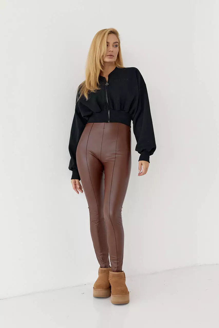 Для осенне-зимнего сезона женские лосины из кожзама - это не просто модный тренд, а еще и практичная вещь, которая поможет легко пережить дождливую или снежную погоду.