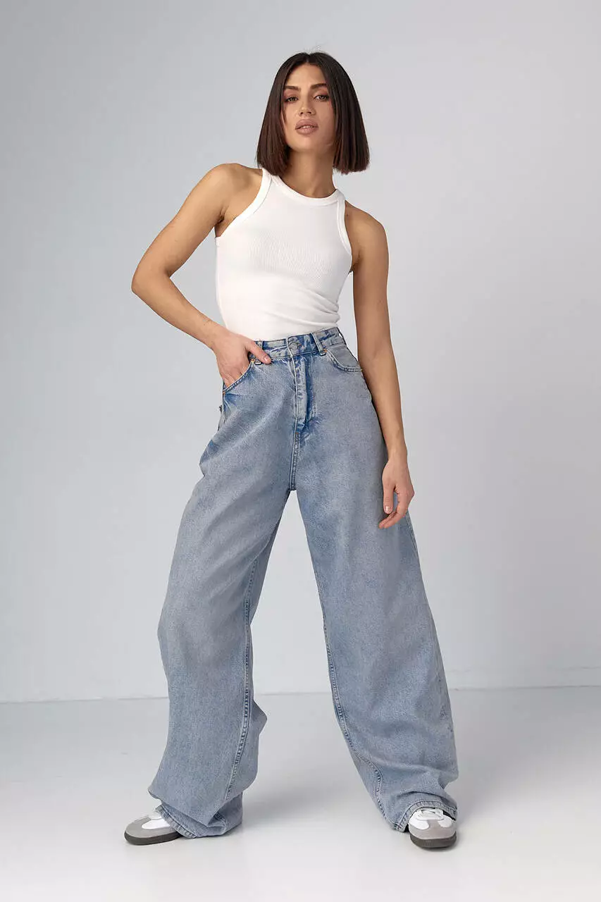 Женские широкие джинсы wide-leg - синий цвет, 34р (есть размеры)