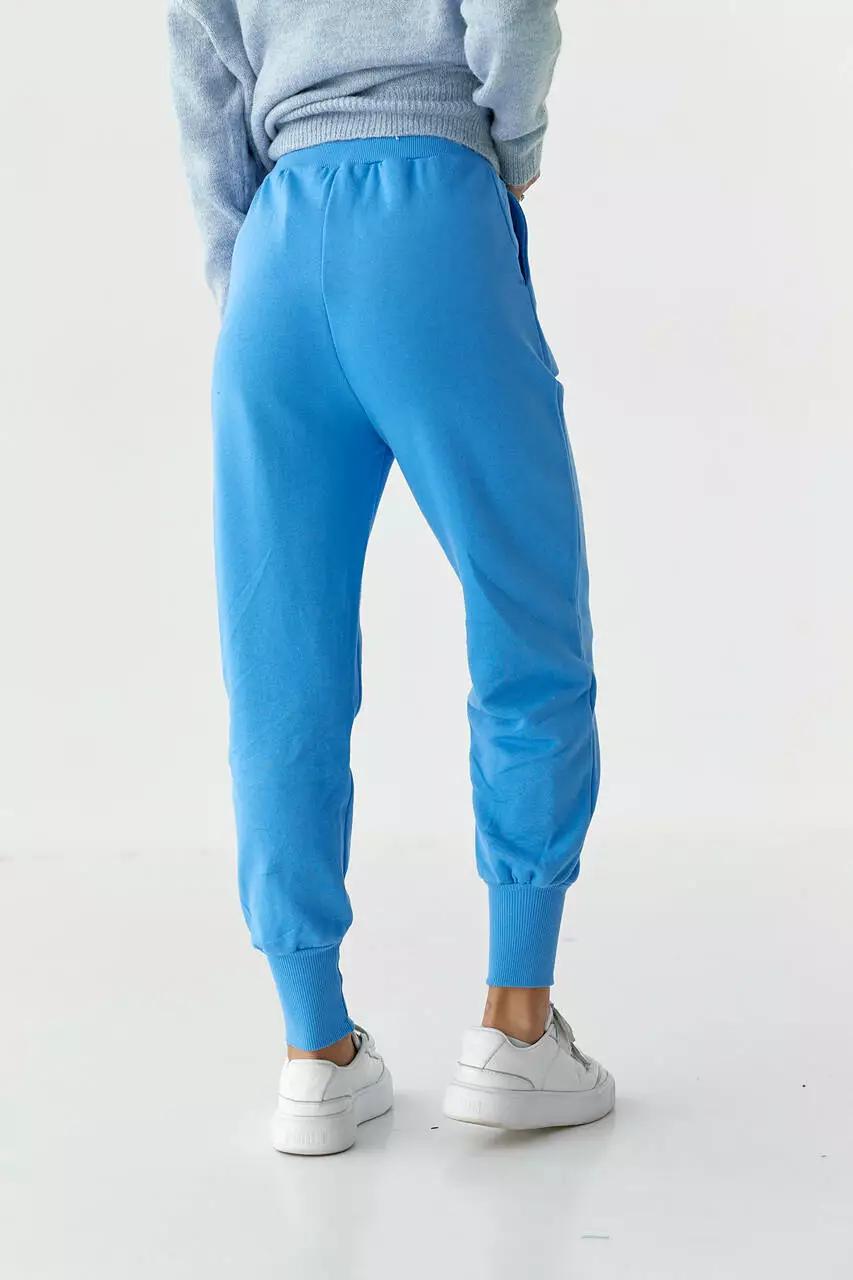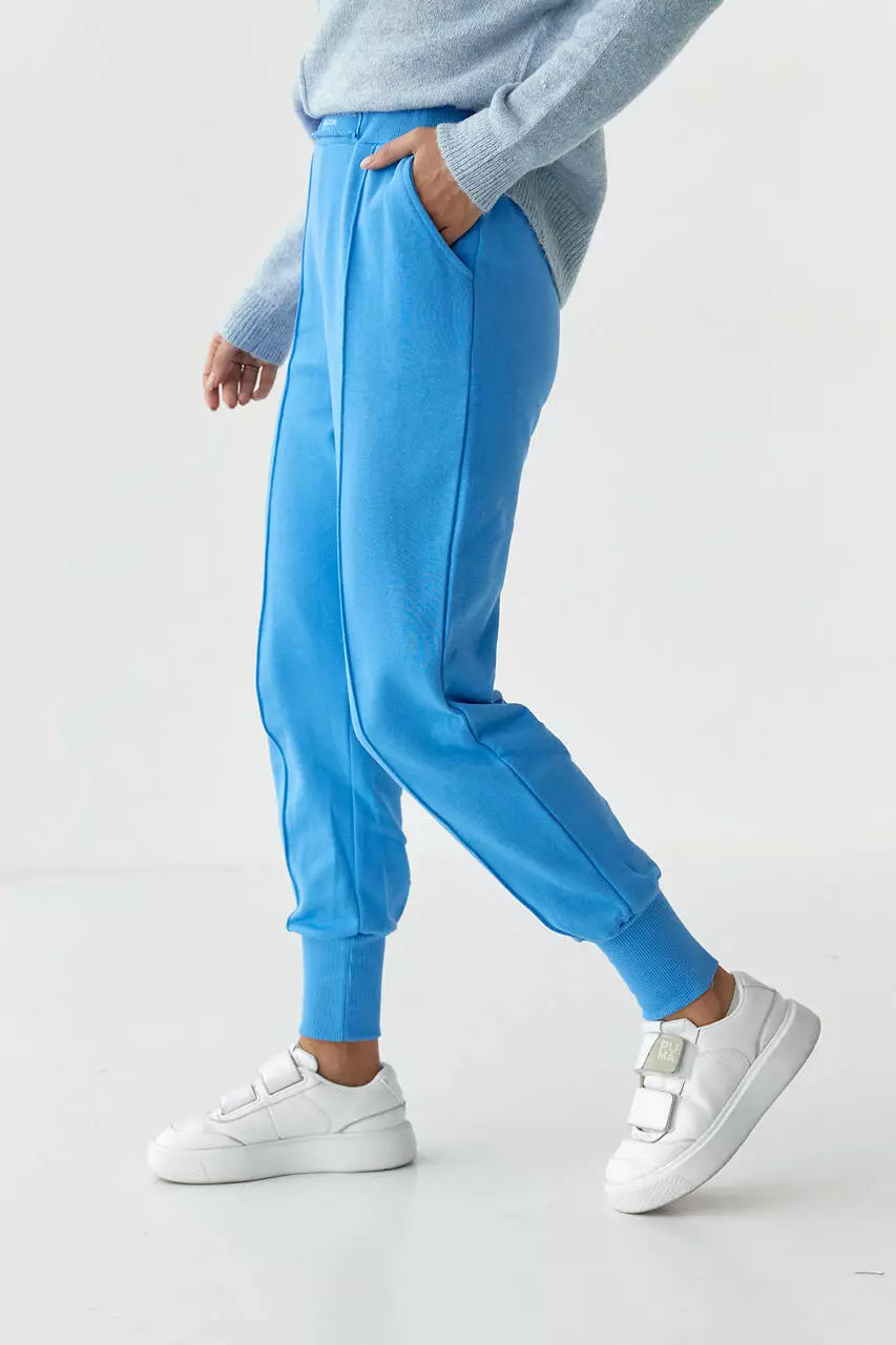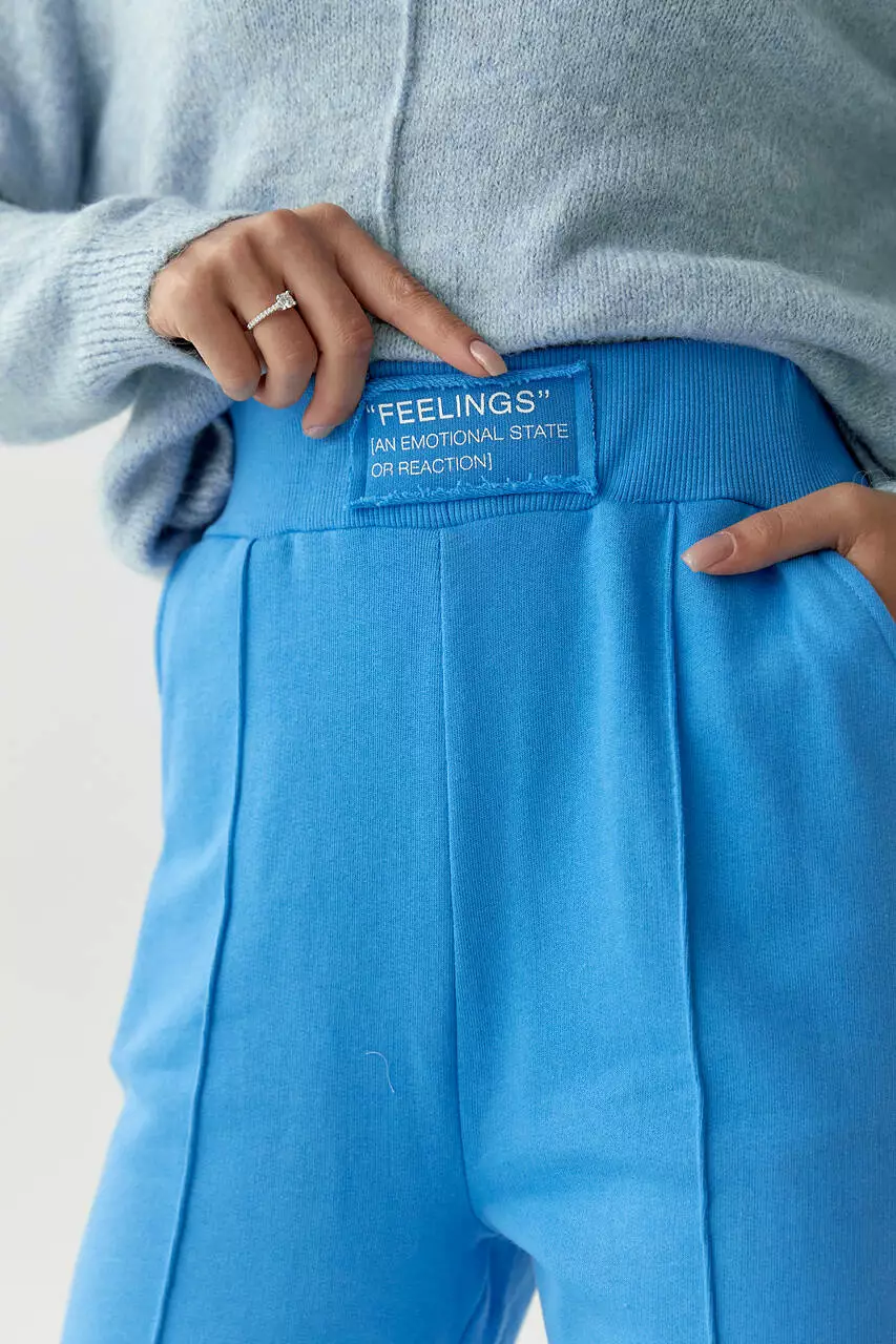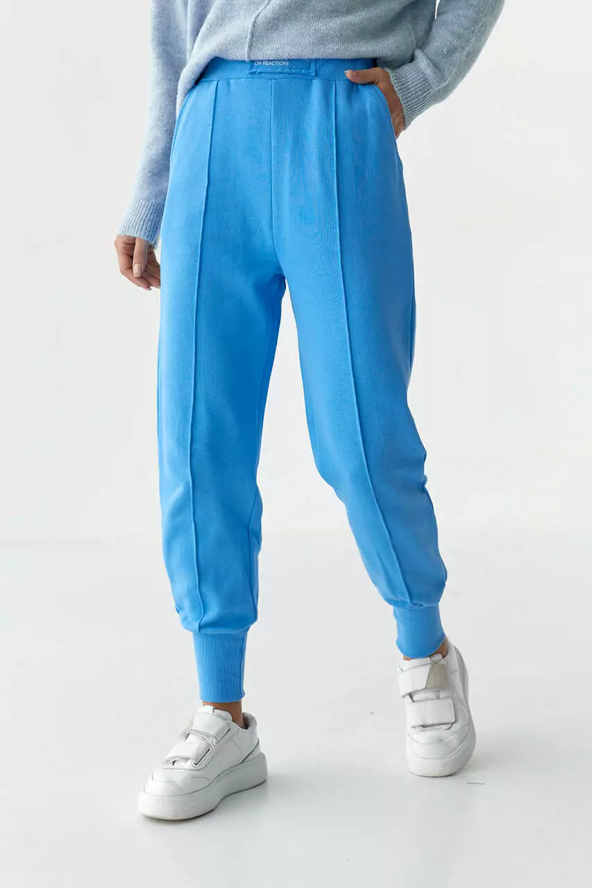 рубчик. В поясе вшита широкая резинка, а спереди расположена