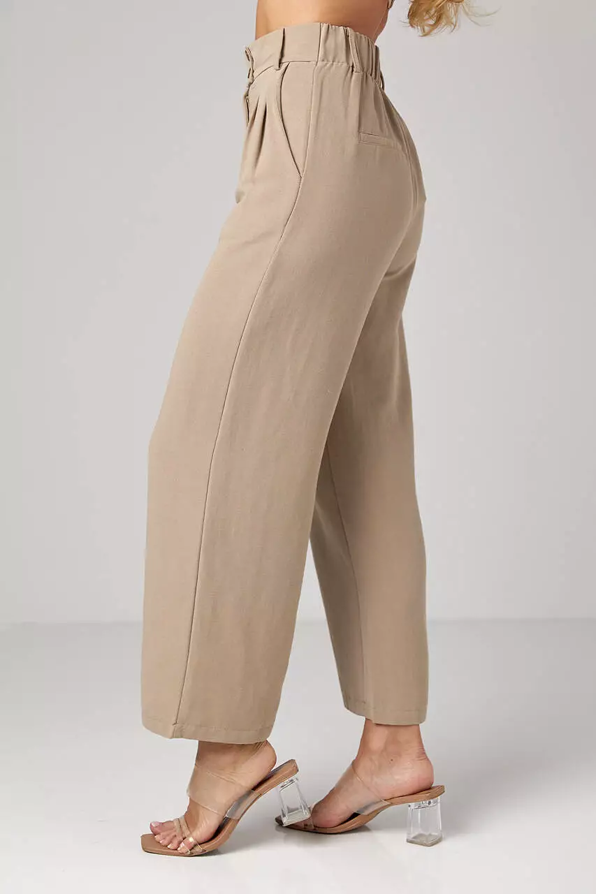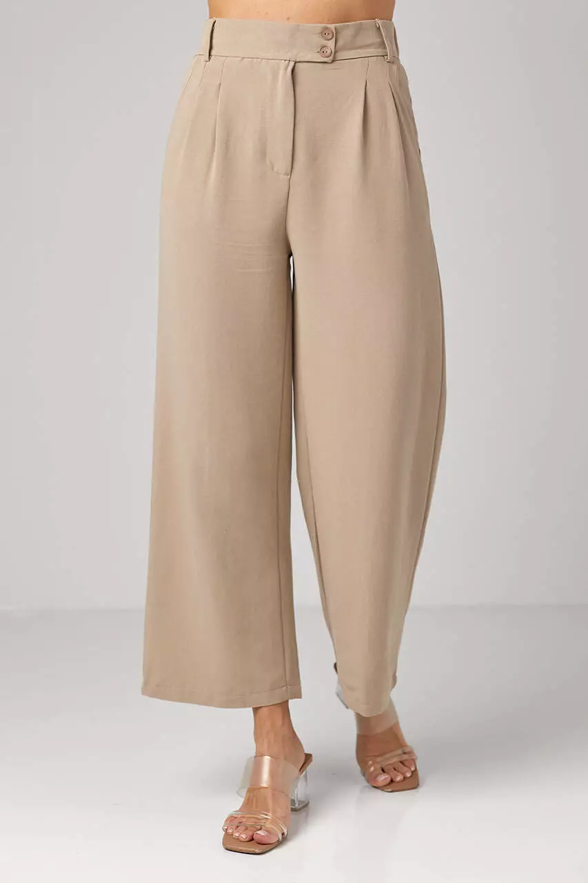 одна потайная), создавая эффект асимметрии. Также брюки спереди