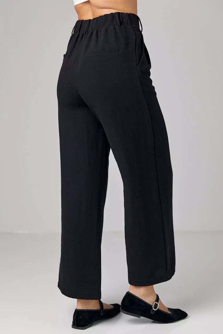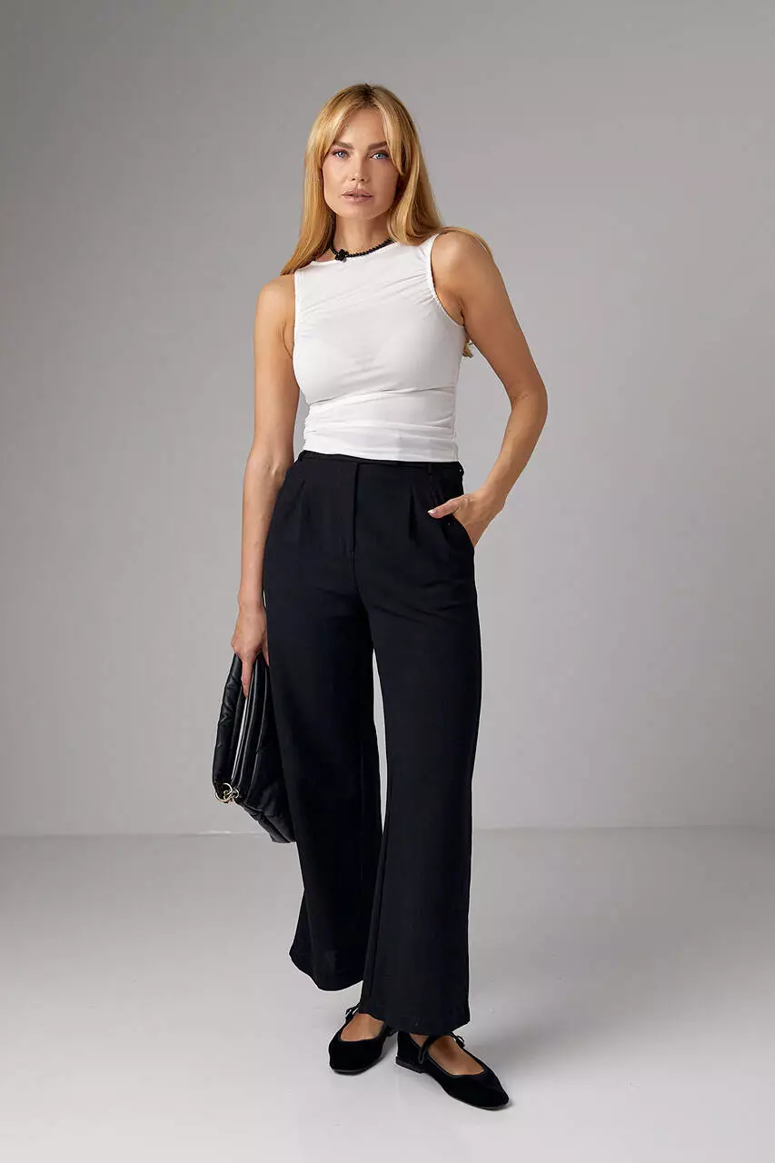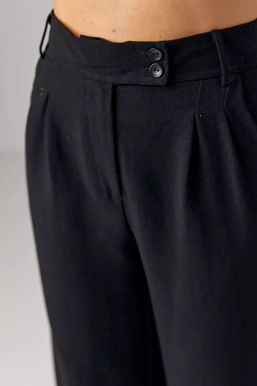 одна потайная), создавая эффект асимметрии. Также брюки спереди