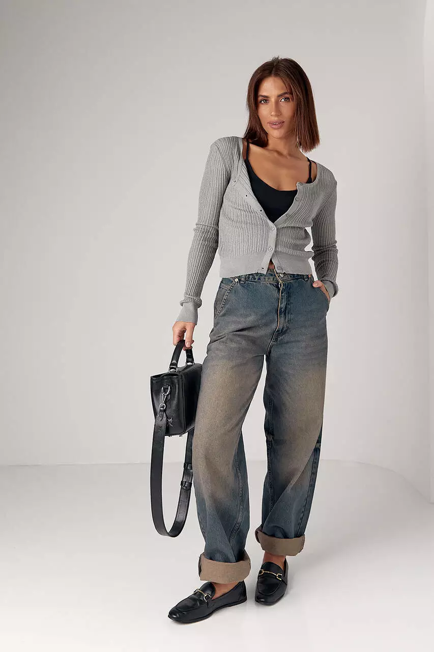 Эта модель полностью выполнена из ажурной вязки, с круглой