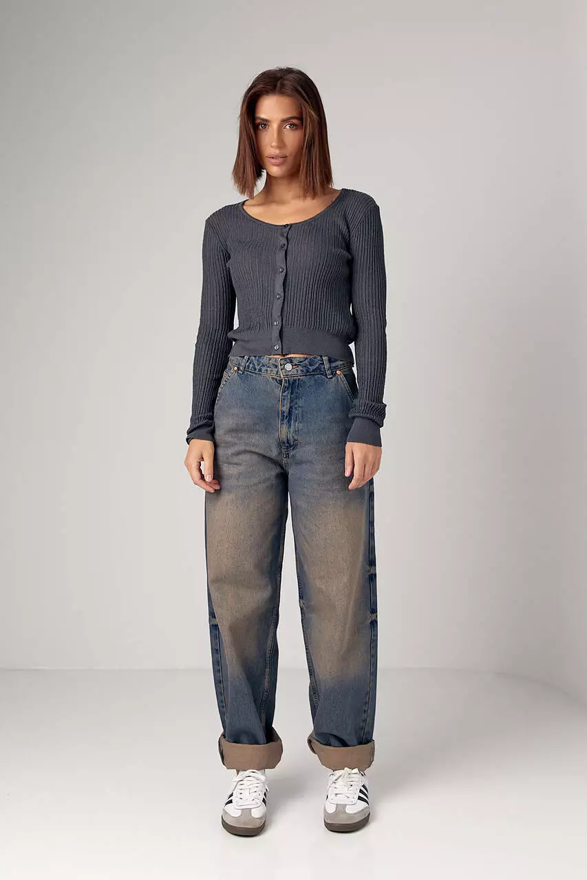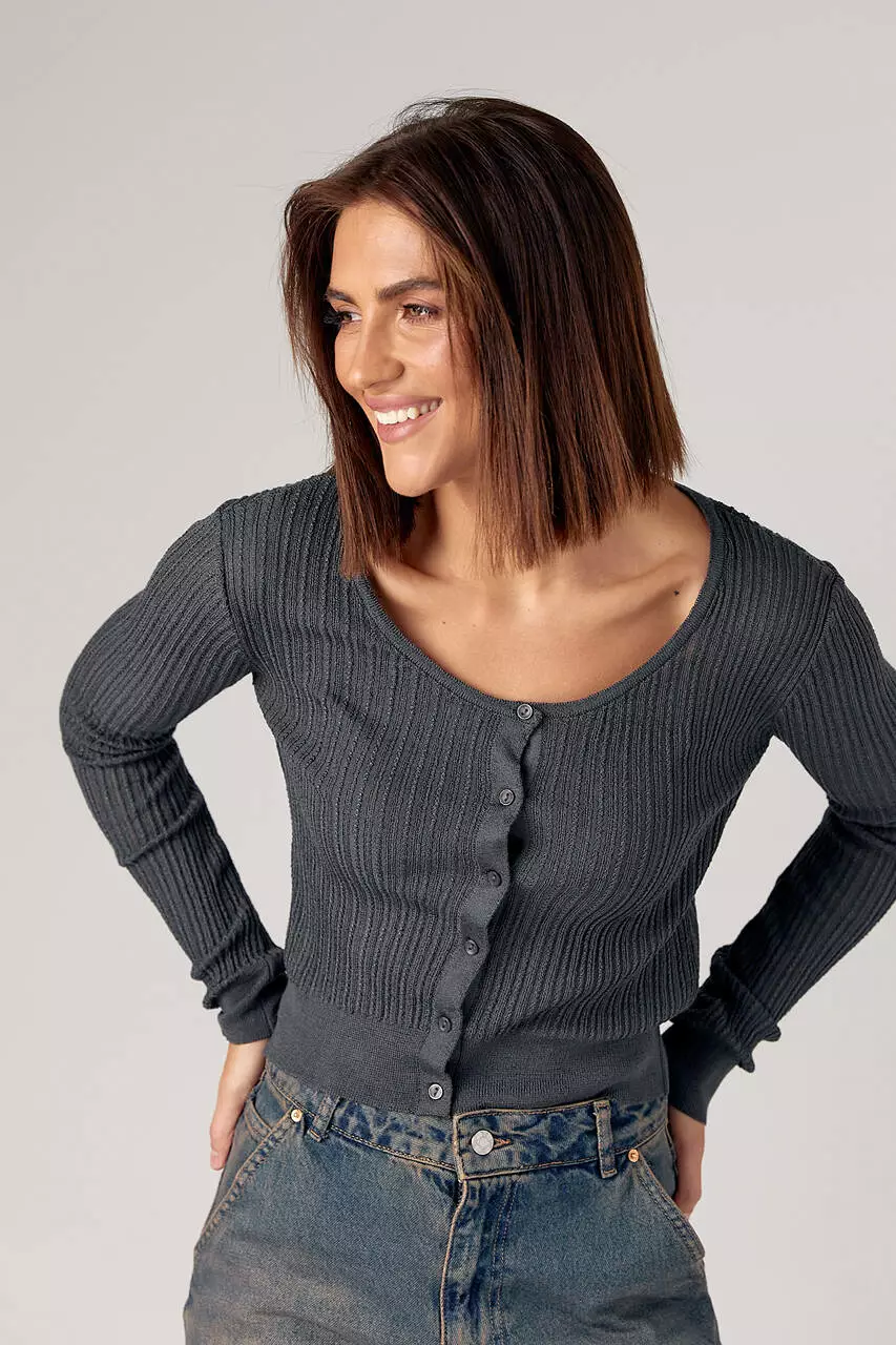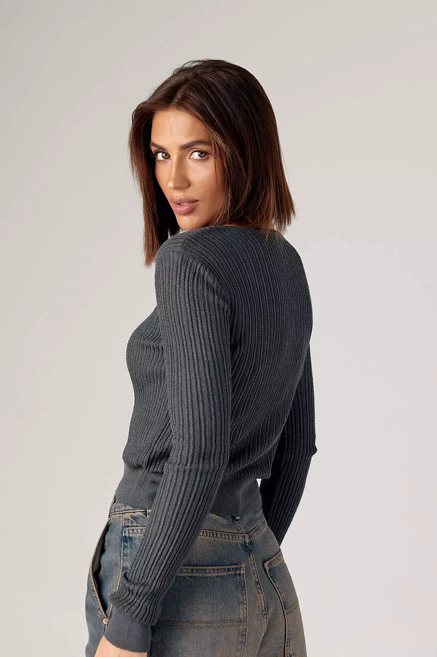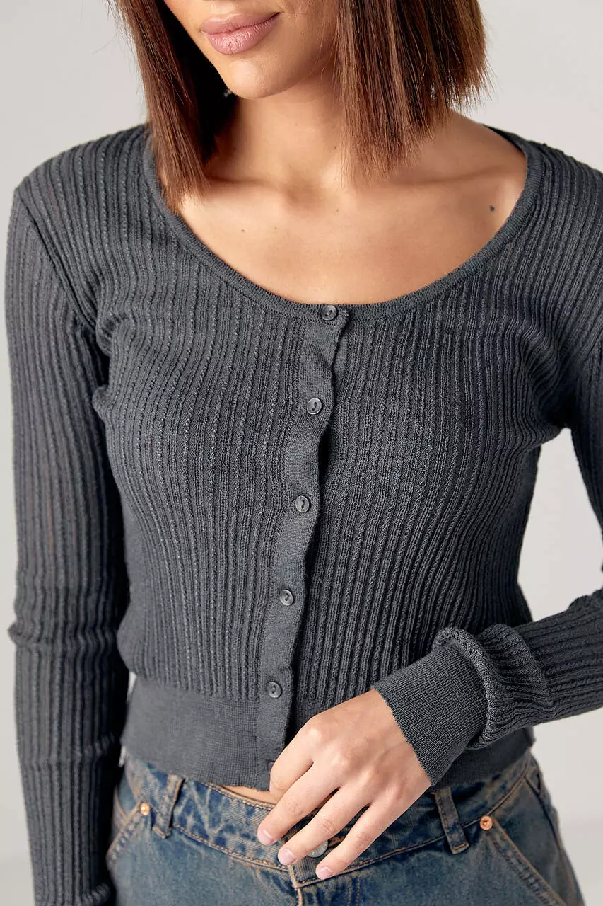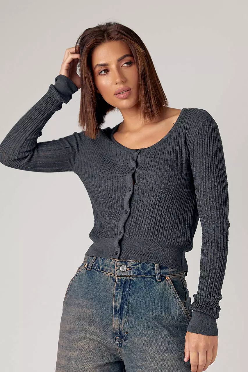 Эта модель полностью выполнена из ажурной вязки, с круглой