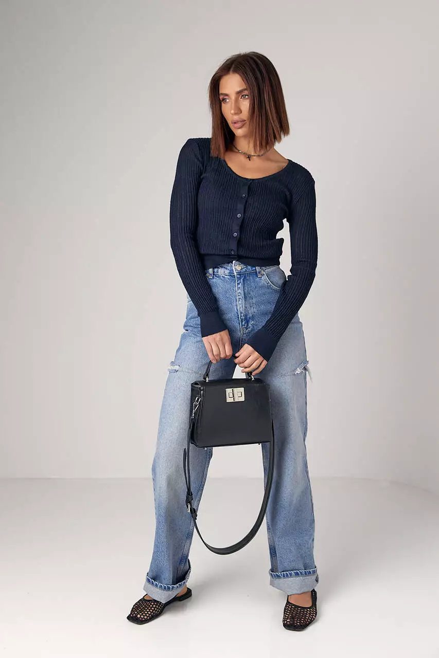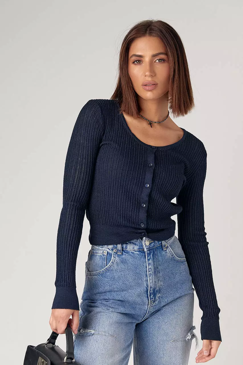 Короткий вязаный кардиган для девушек - классика,