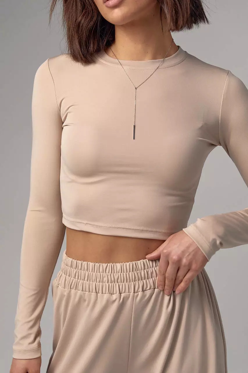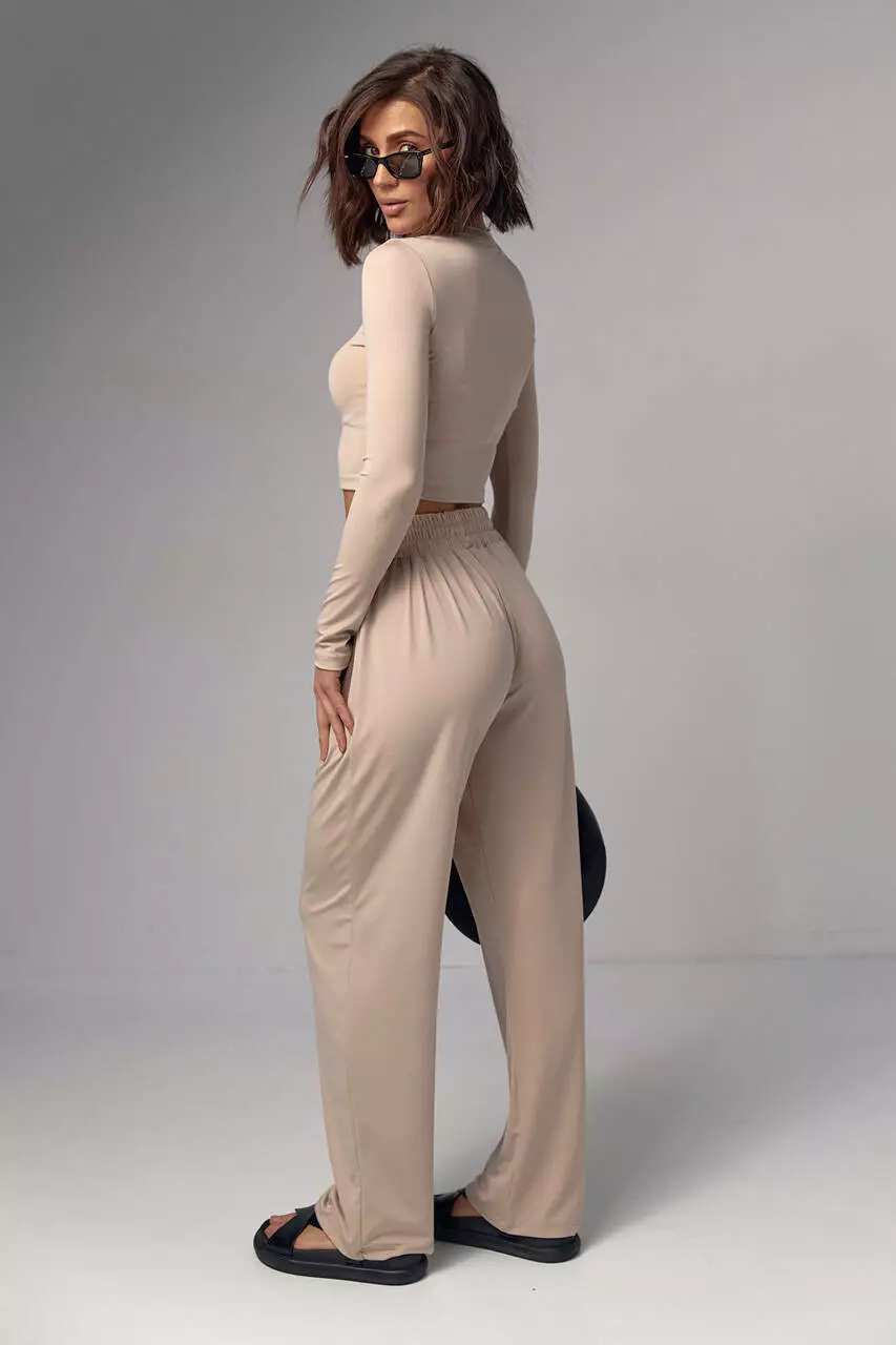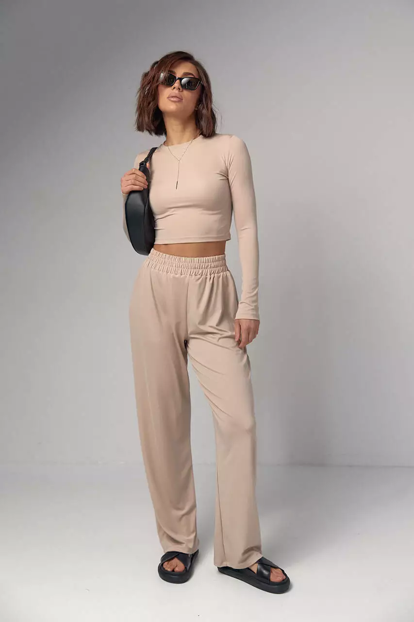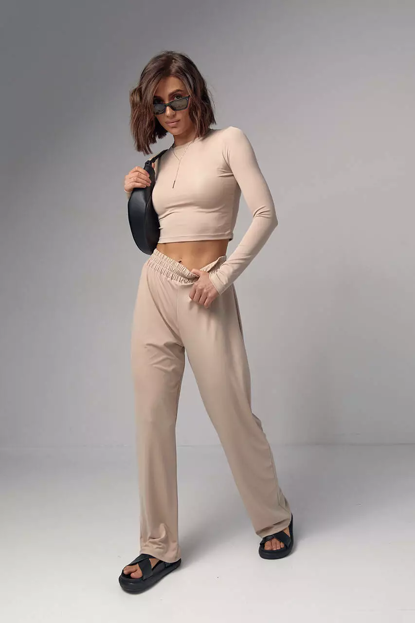 Женский базовый костюм с эластичной ткани - бежевый цвет, L (есть размеры)