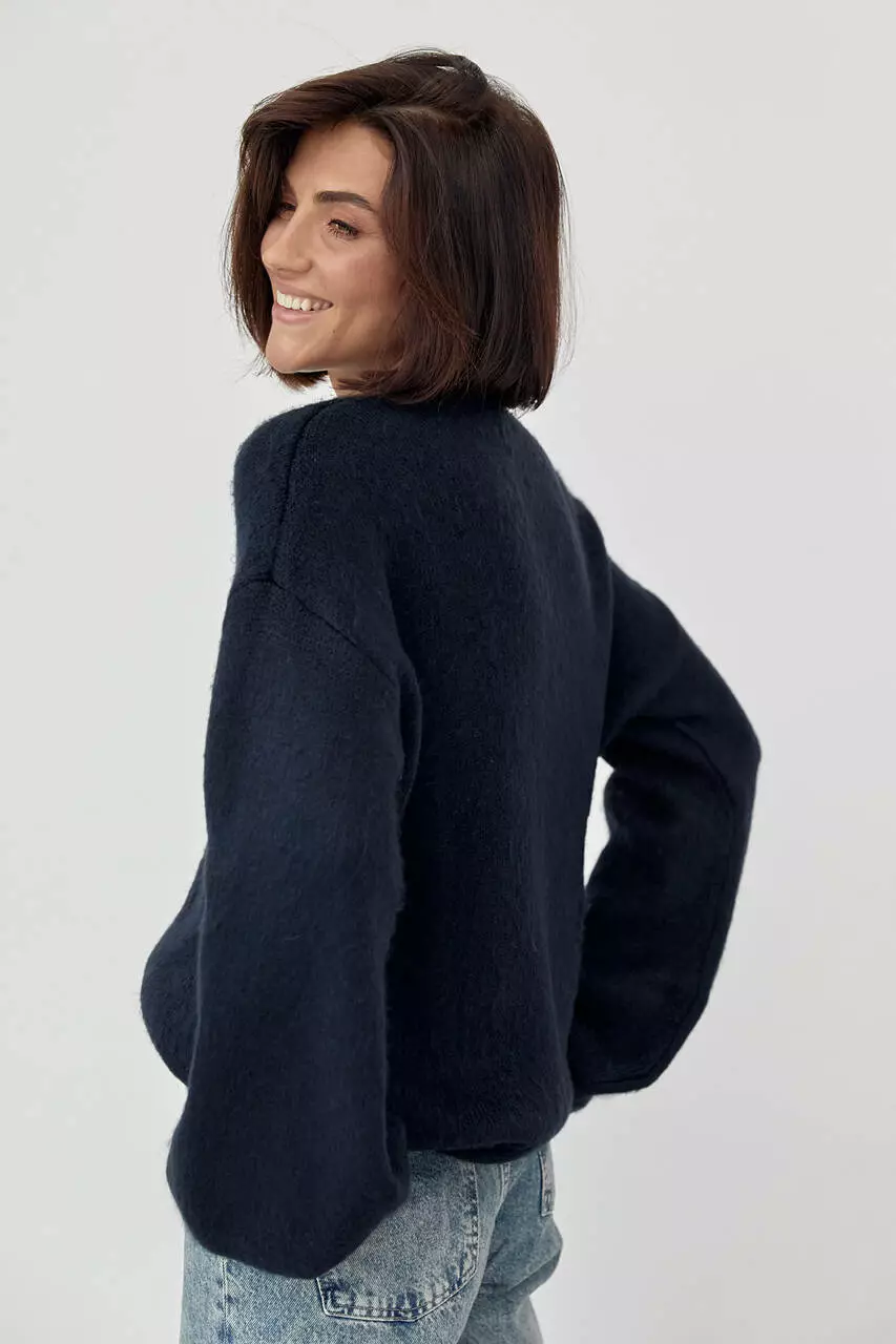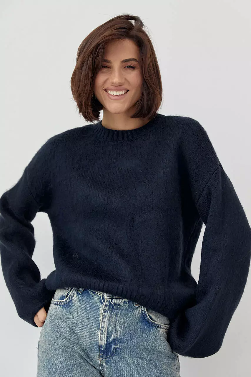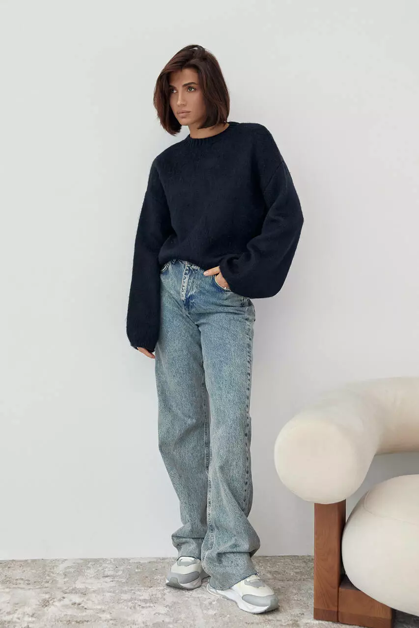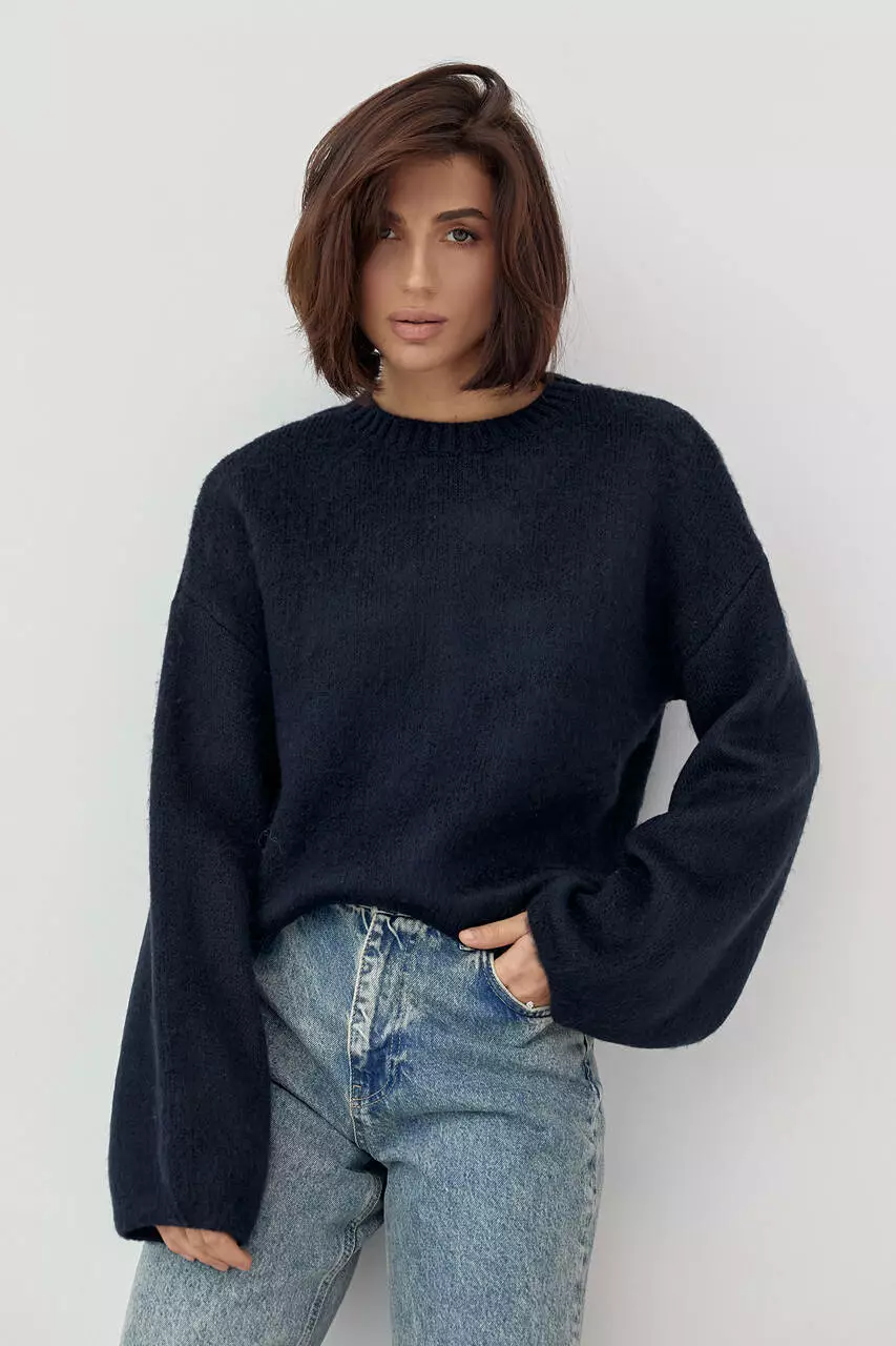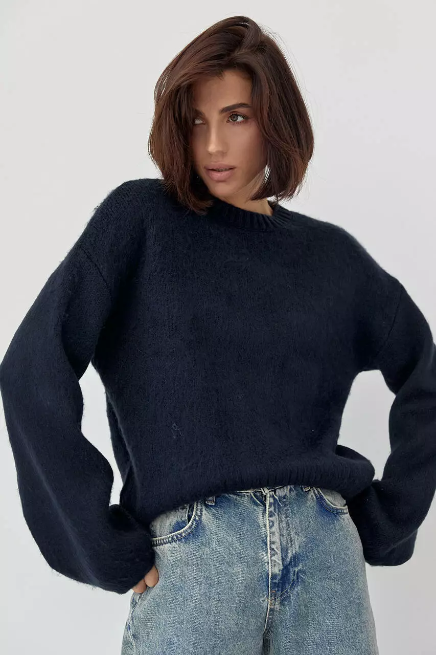 Женский джемпер с ворсистой нитью - темно-синий цвет, L (есть размеры)