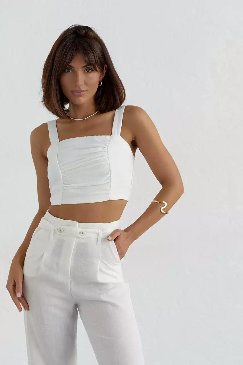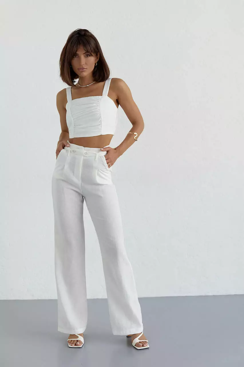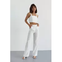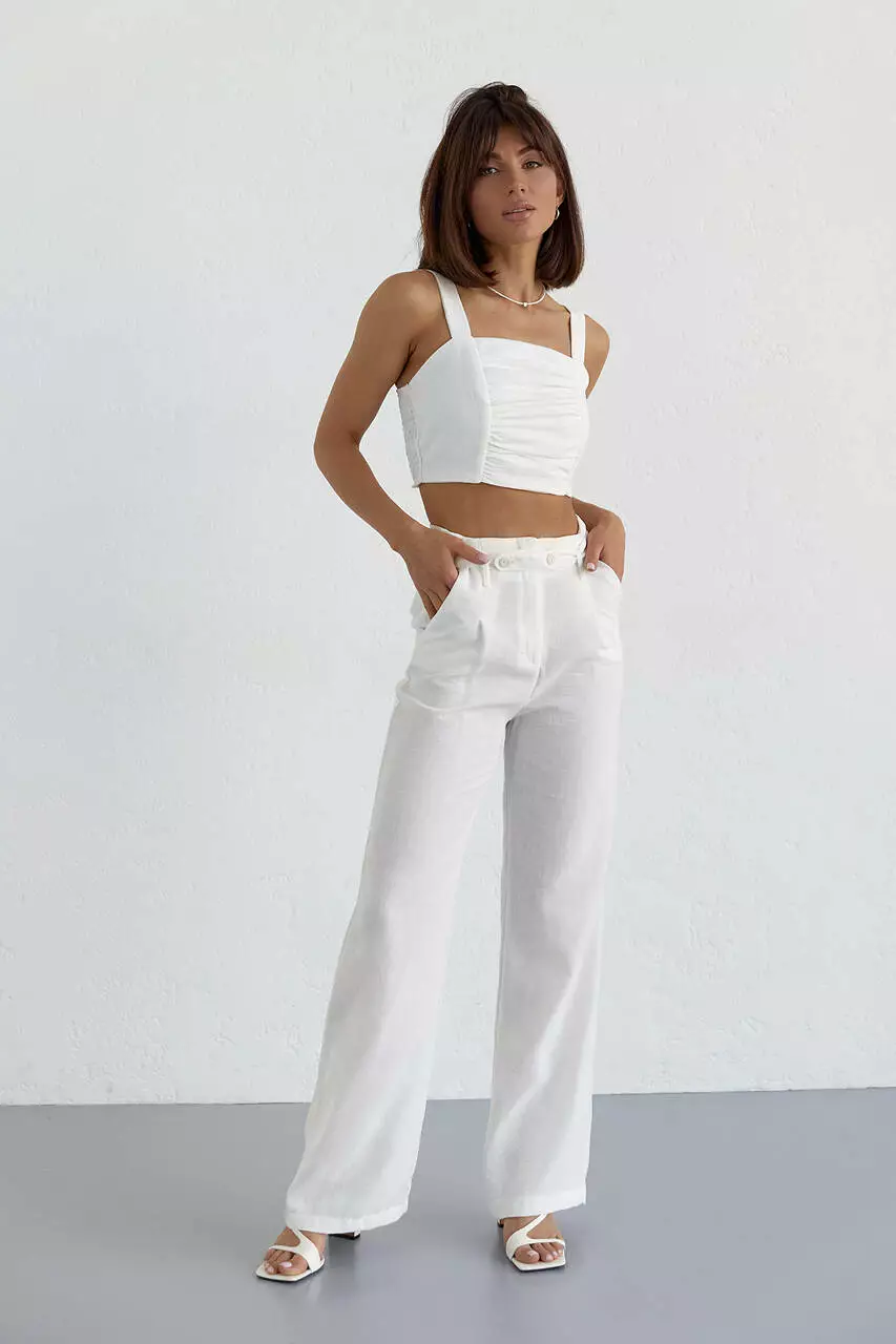 Женский хлопковый костюм с брюками и топом - молочный цвет, L (есть размеры)