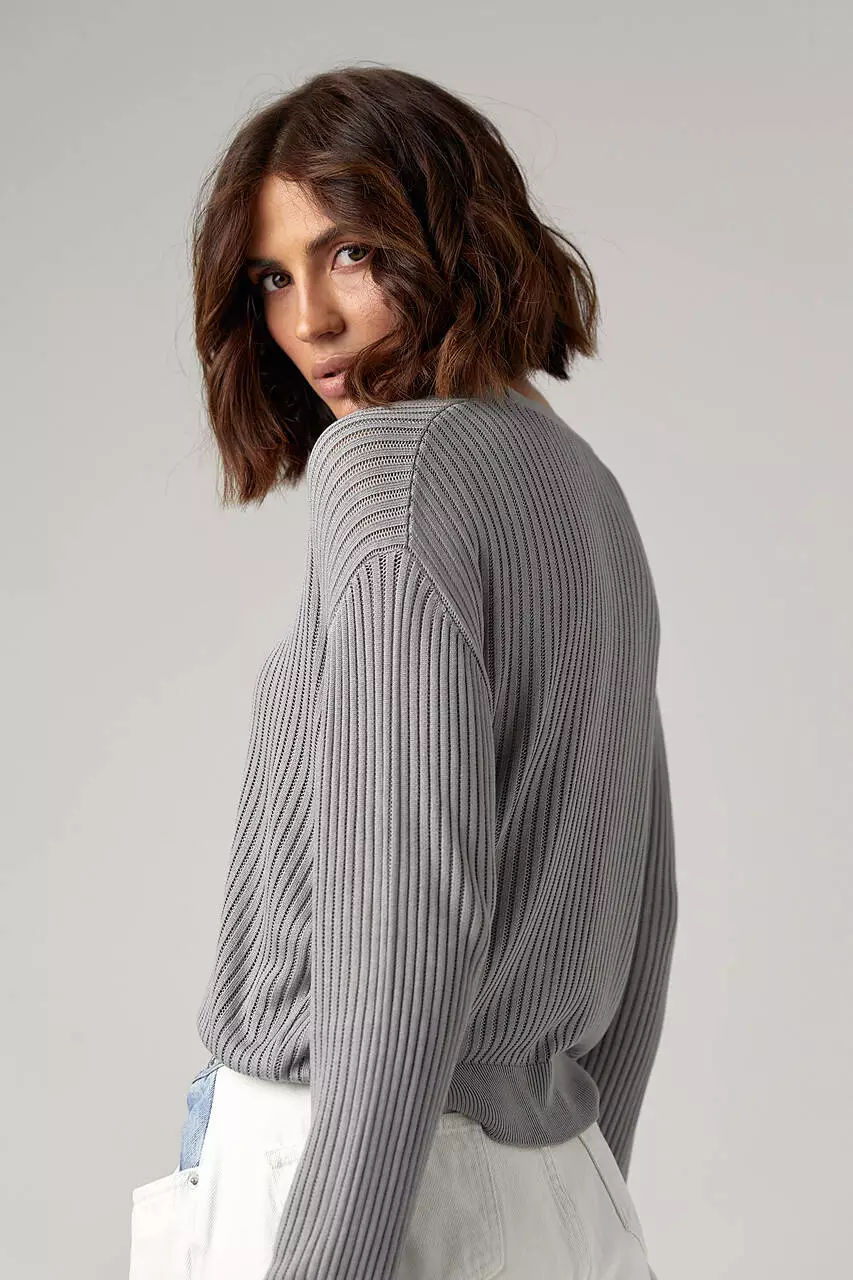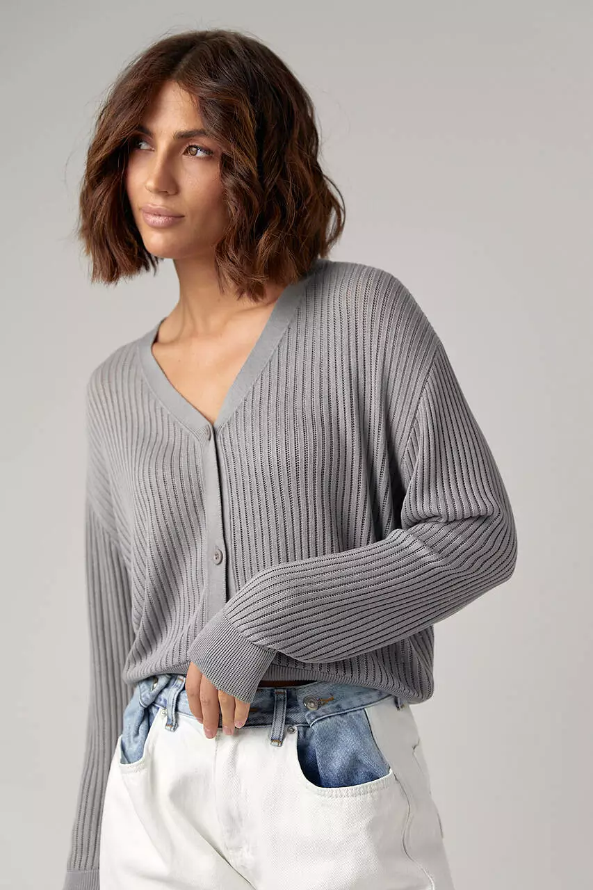 Женский кардиган на пуговицах с вискозной ажурной вязки - серый цвет, L (есть размеры)