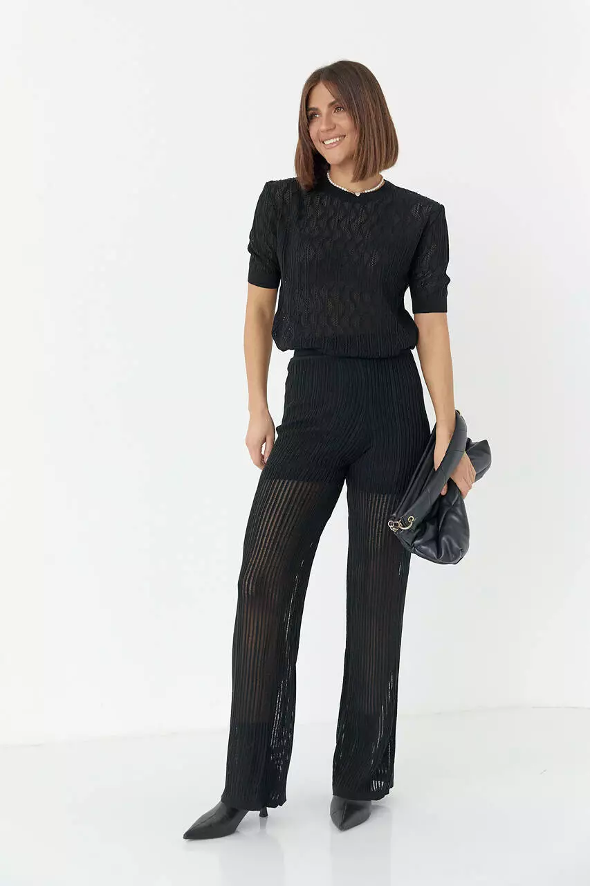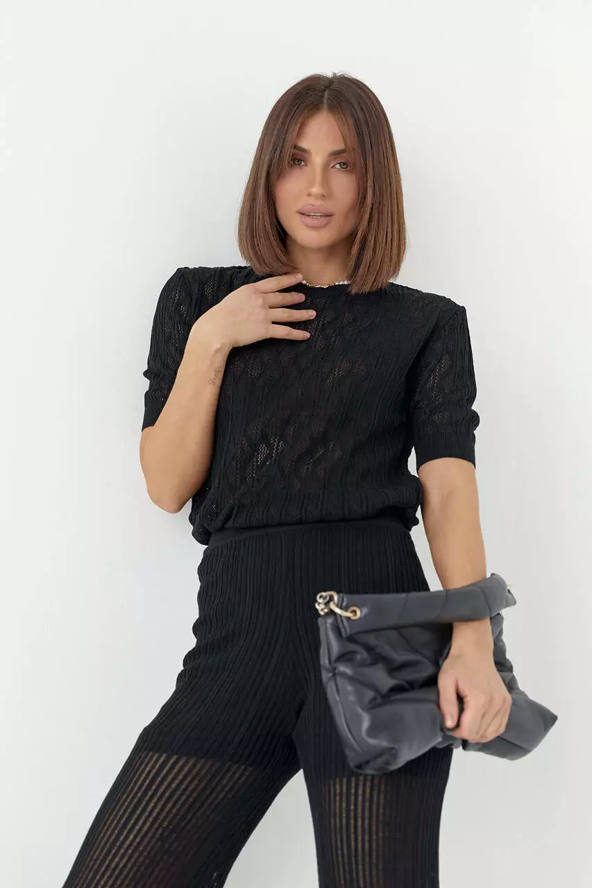 Женский костюм с ажурной вязки - черный цвет, L (есть размеры)