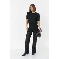 Создавать трендовые образы с максимальным комфортом в новом сезоне тебе поможет стильный брючный костюм с ажурной вязки.