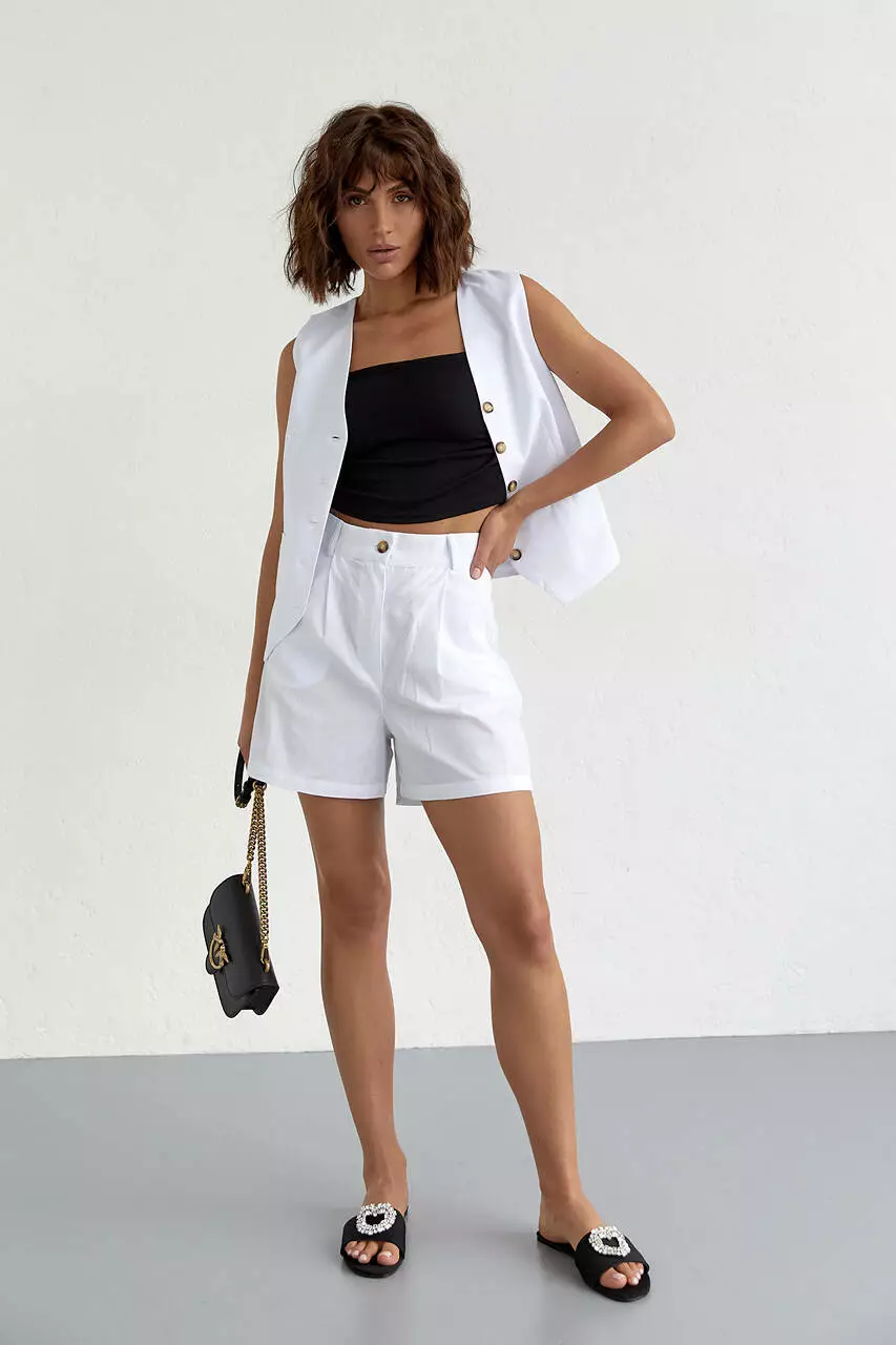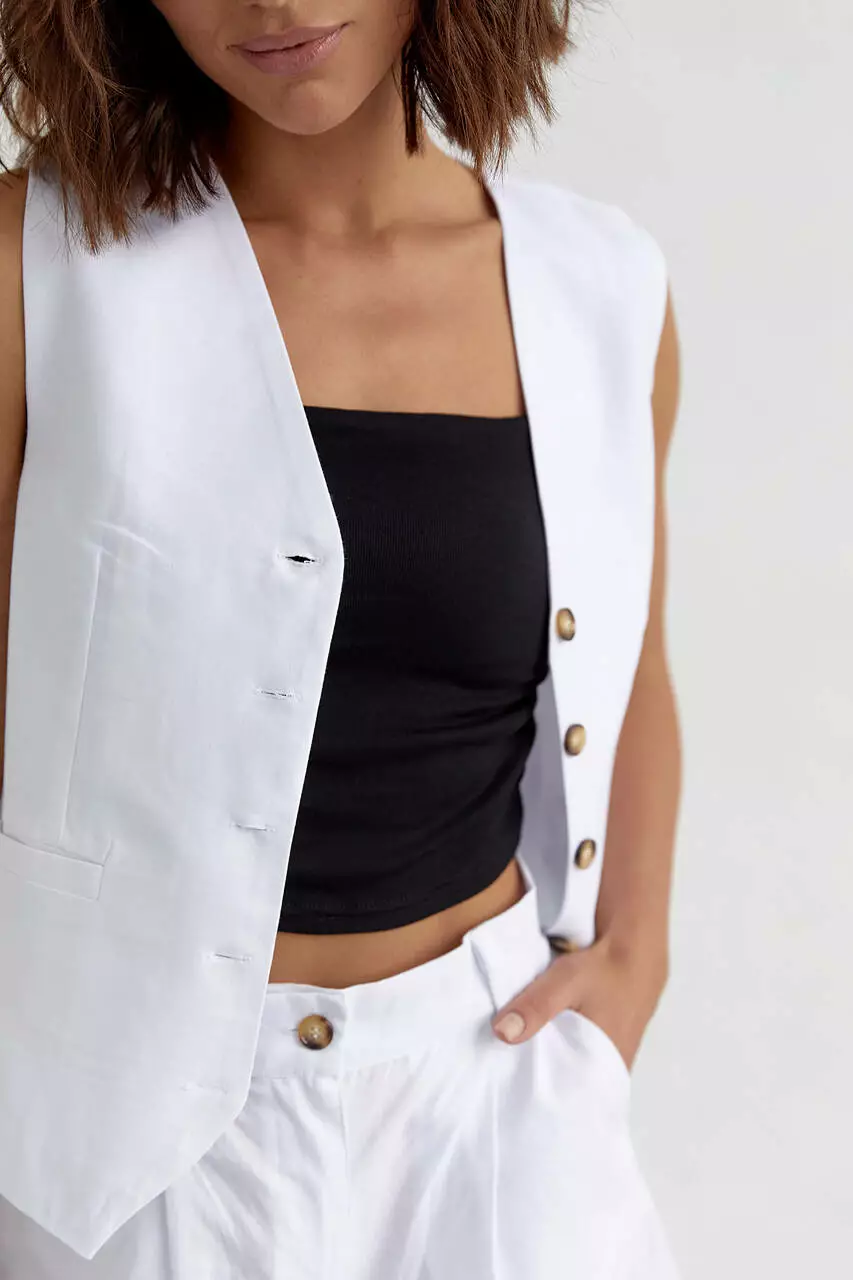 В комплекте жилетка с V-образной горловиной и фигурным низом