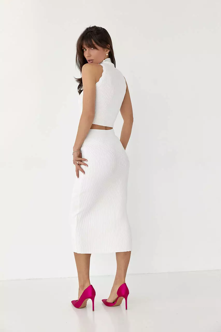 Женский костюм с топом и юбкой миди - молочный цвет, L (есть размеры)