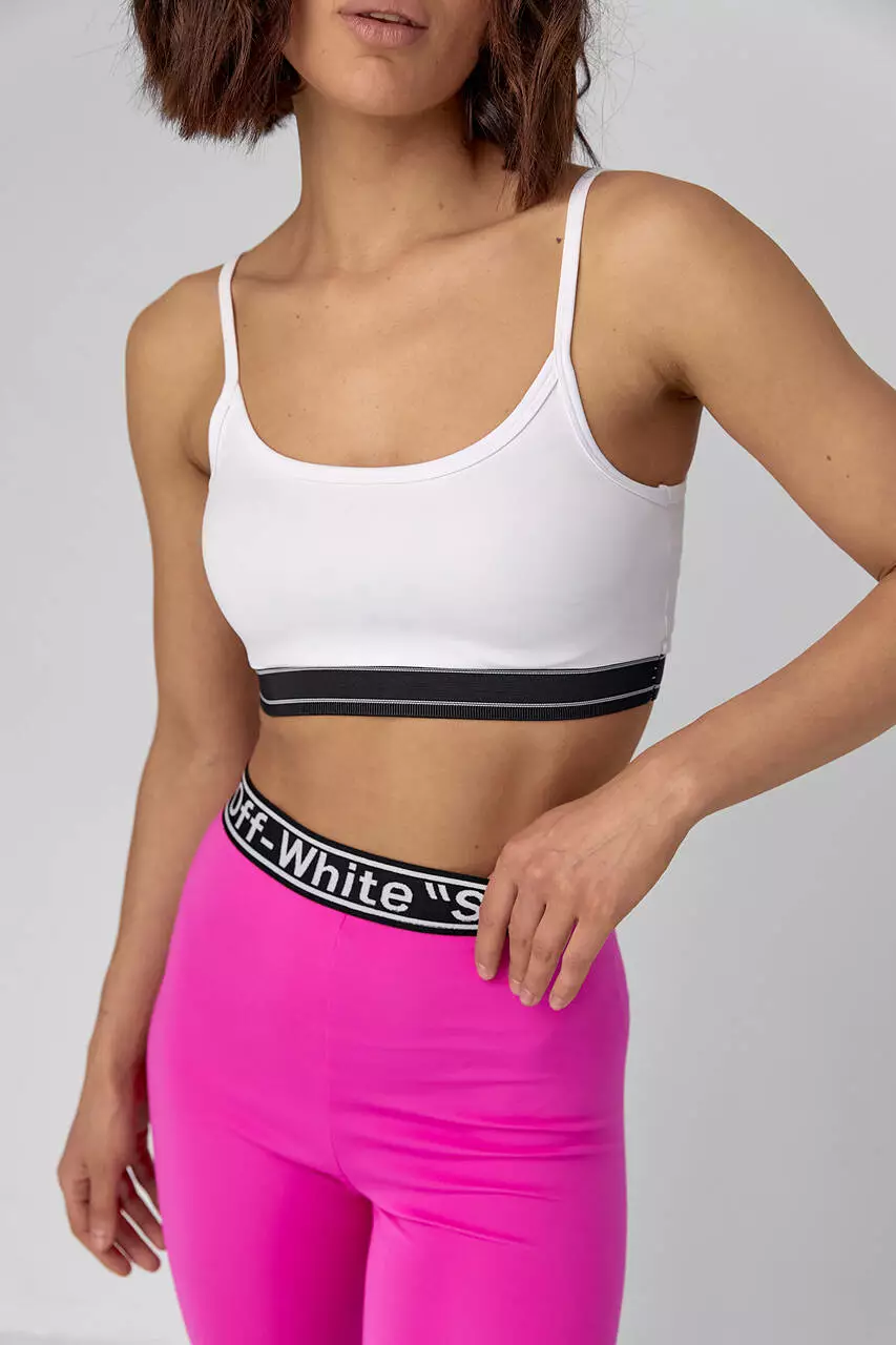 вверху вшита широкая резинка, которая украшена надписями. Короткий
