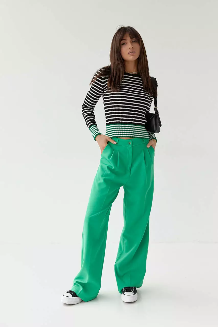 мелкий рубчик, украшенная горизонтальными полосками. Рукава