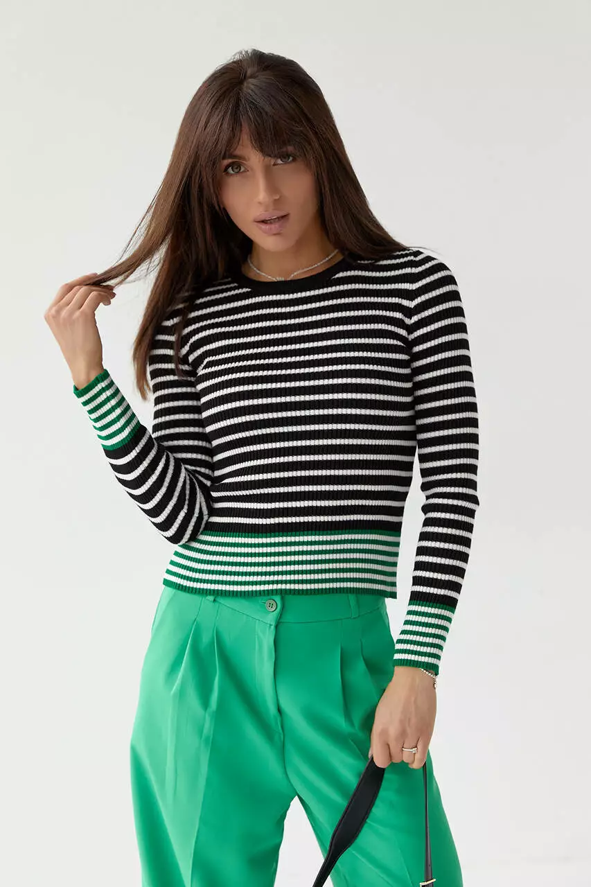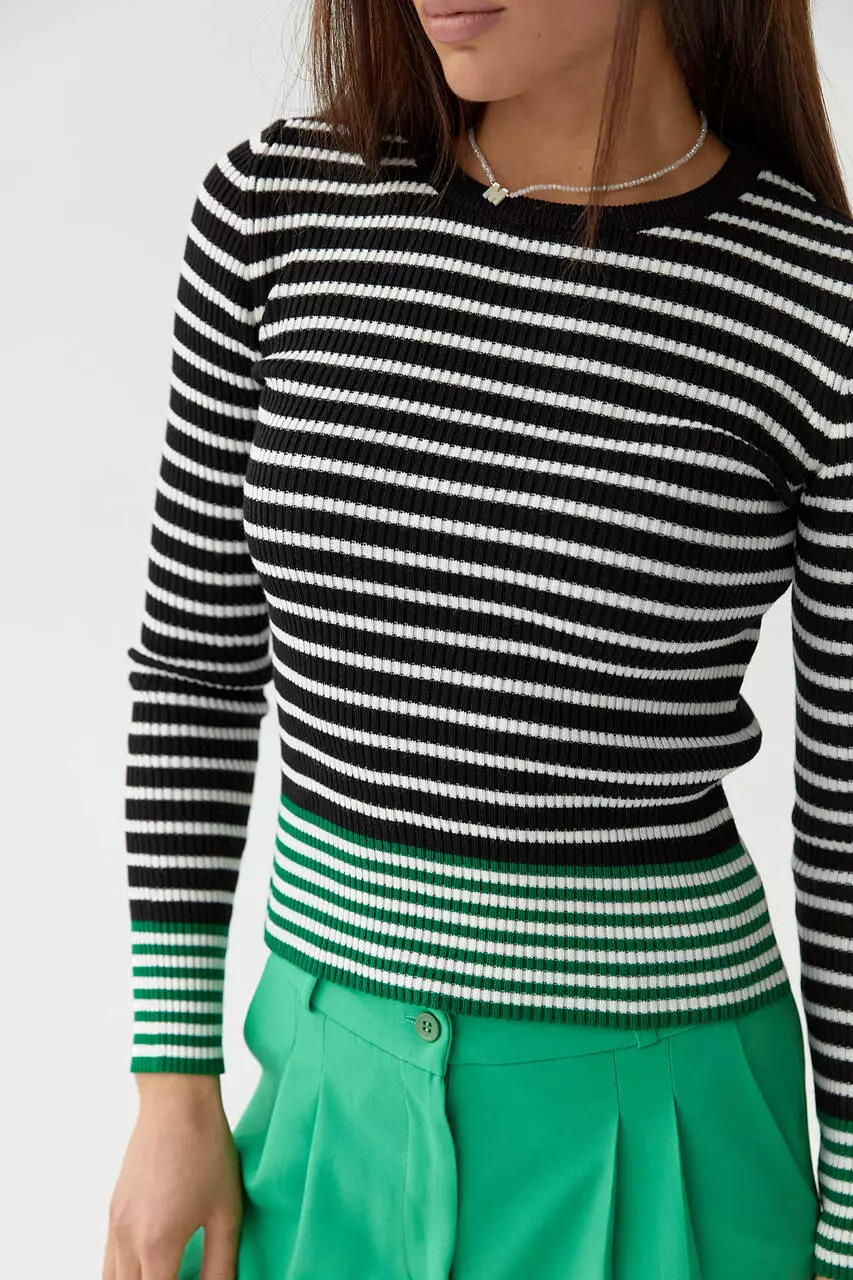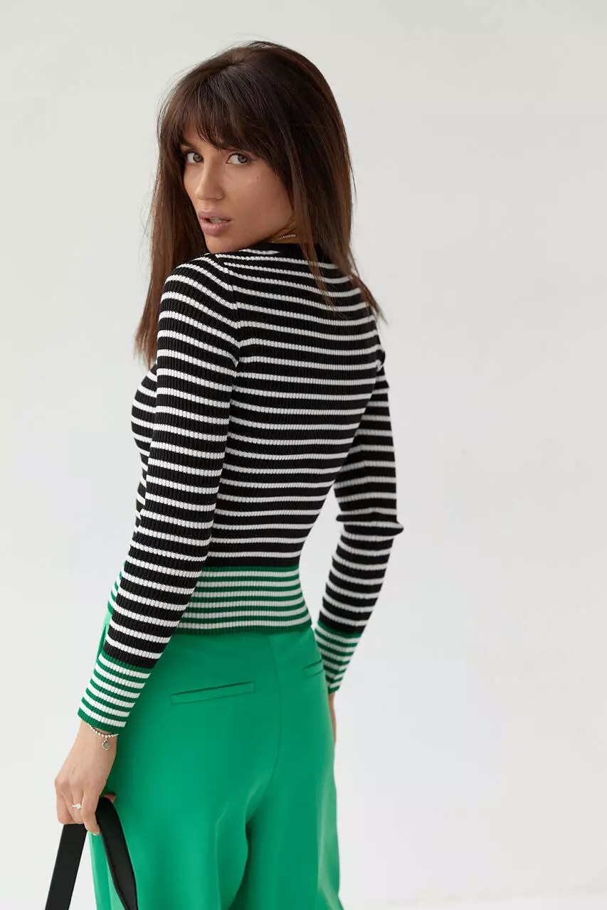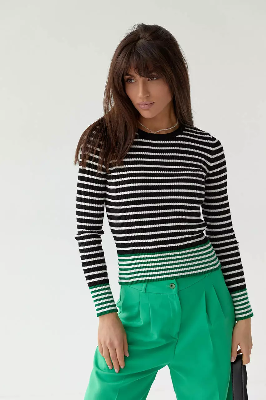 Модель прилегающая, полностью выполнена из машинной вязки в