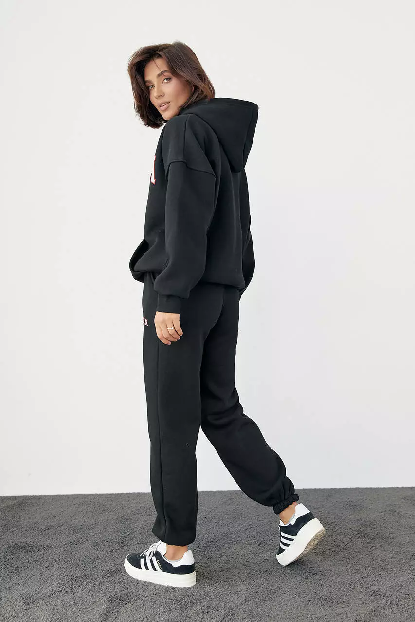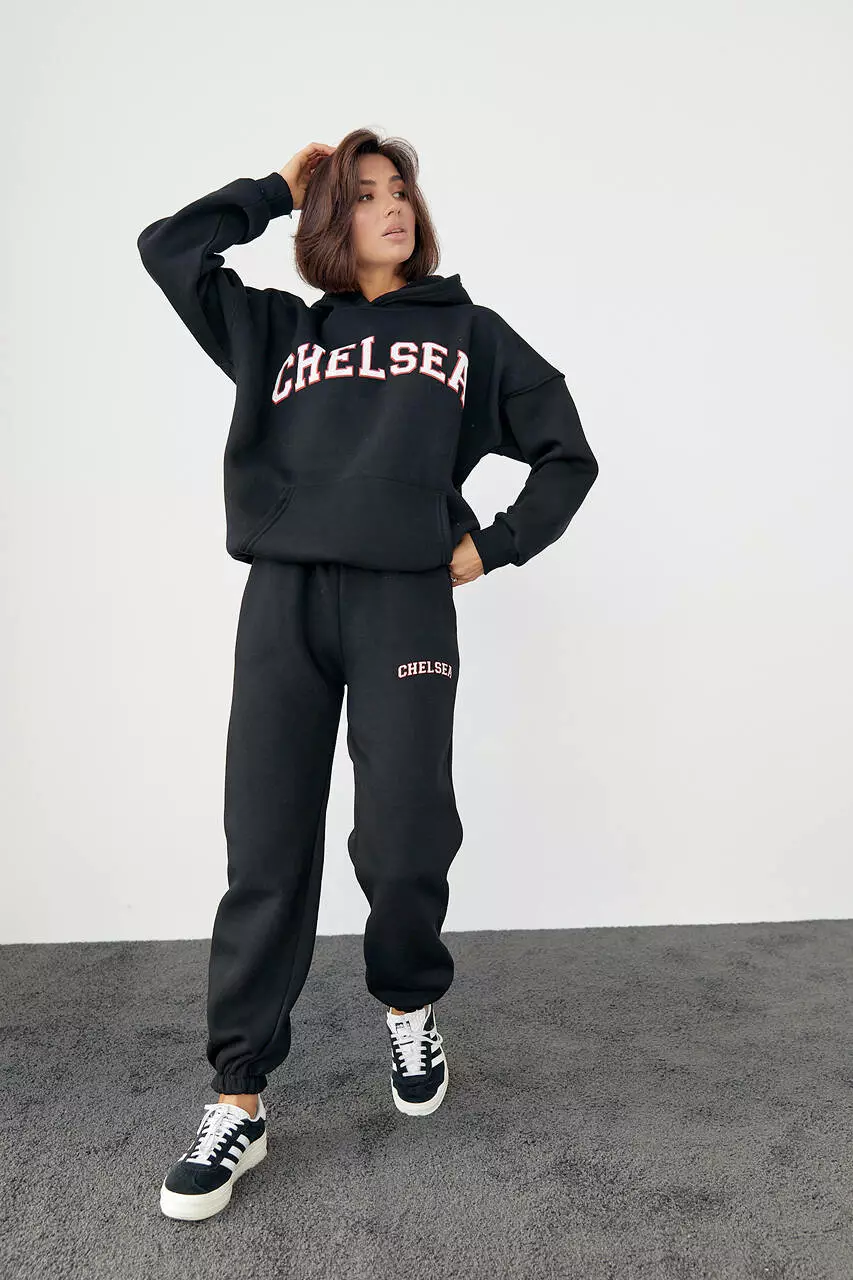 Женский спортивный костюм на флисе с принтом Chelsea - черный цвет, L (есть размеры)