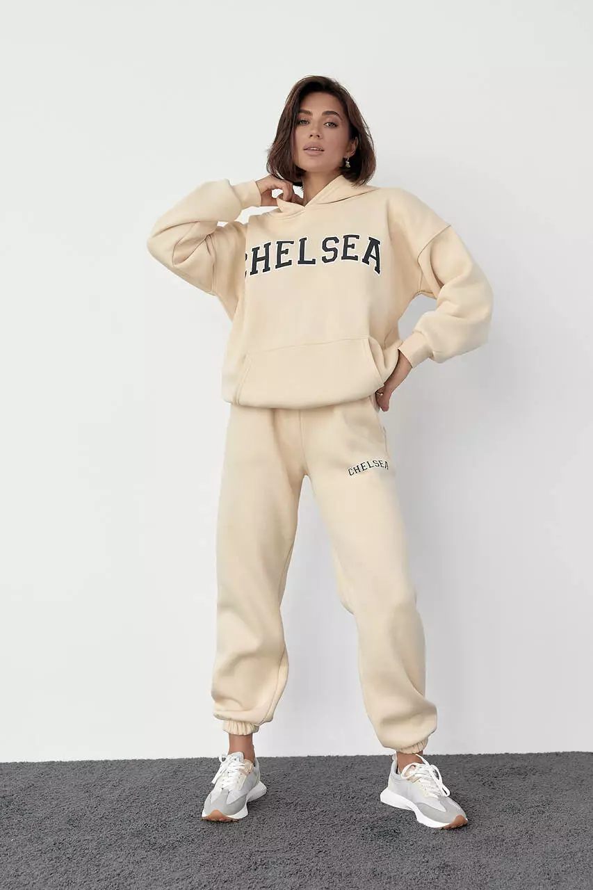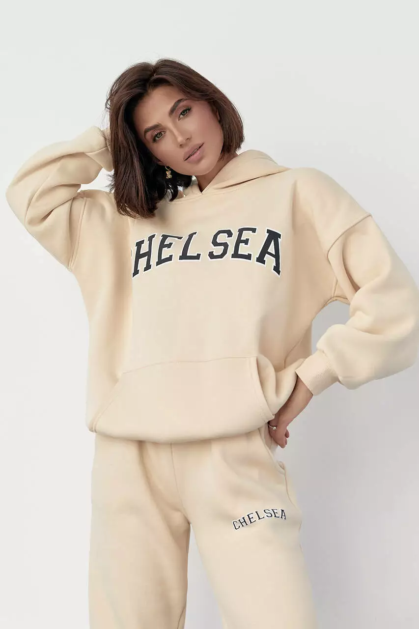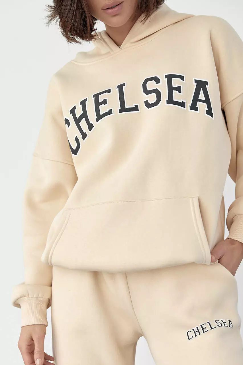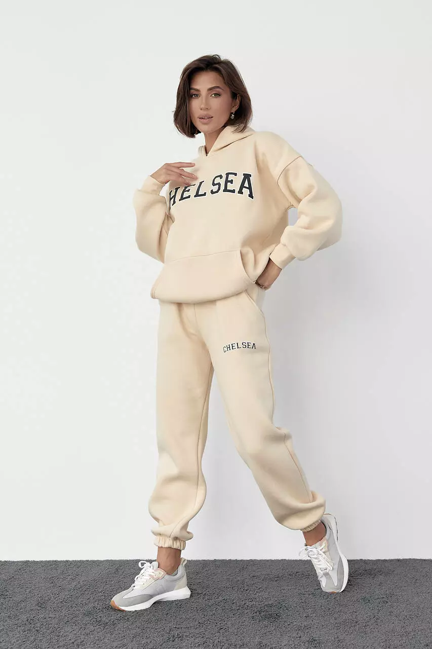Женский спортивный костюм на флисе с принтом Chelsea - кремовый цвет, M (есть размеры)