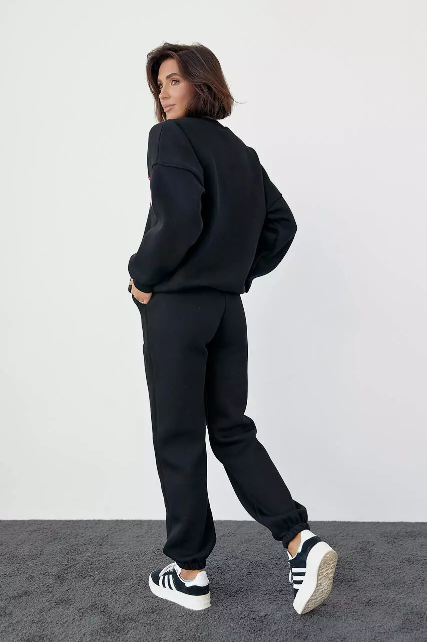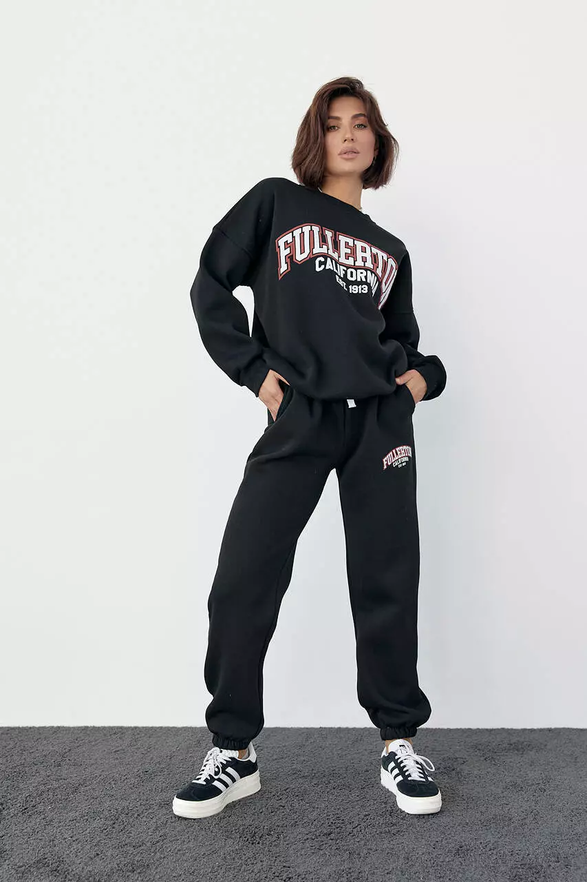 Женский спортивный костюм на флисе с принтом Fullerton California - черный цвет, L (есть размеры)