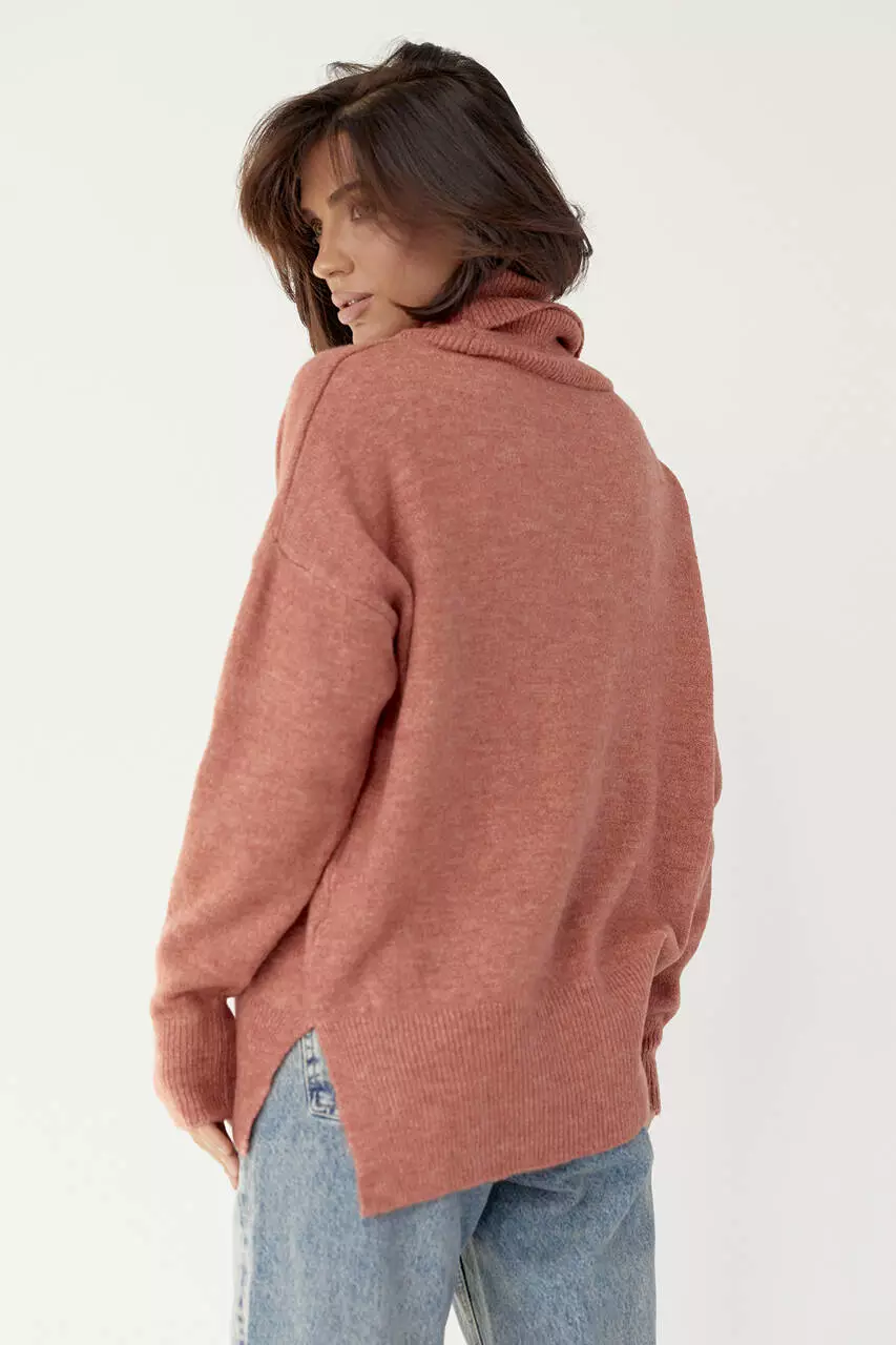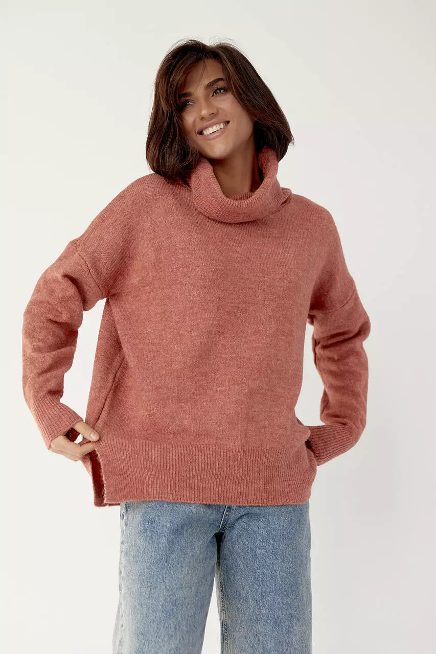 свитере опущены, спинка удлиненная, прямой низ украшен по бокам
