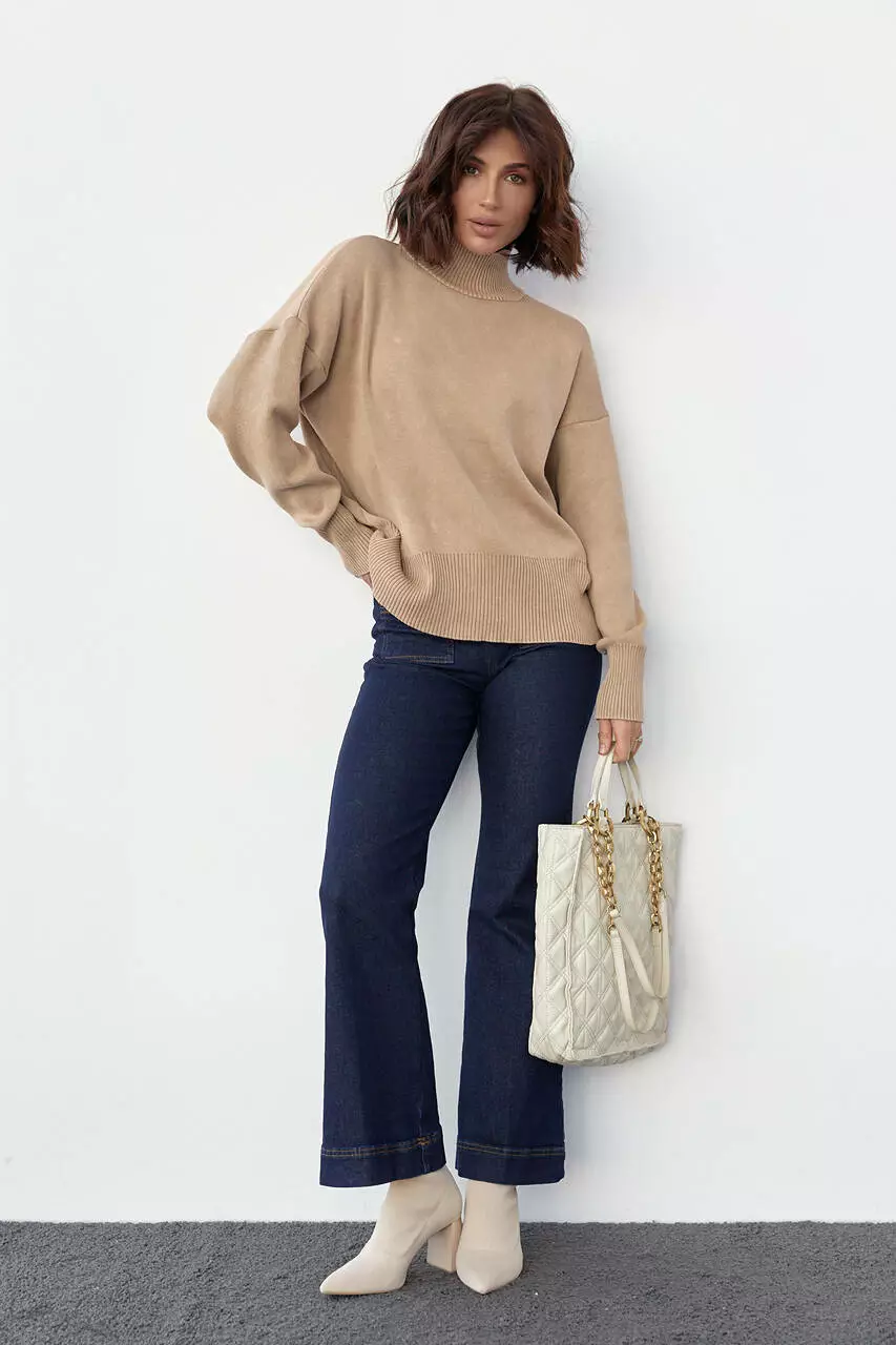 Женский свитер в технике тай-дай - светло-коричневый цвет, L (есть размеры)