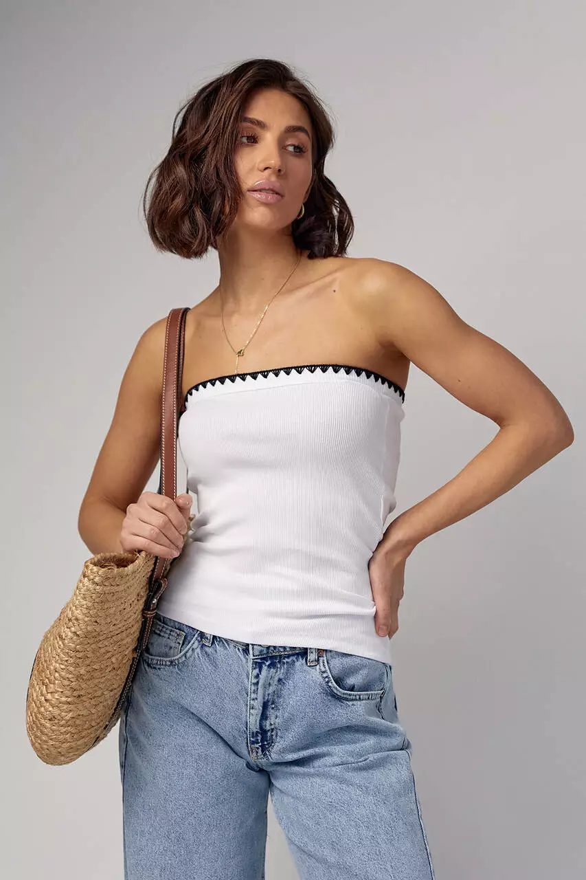 Женский топ без бретелей с асимметричным низом - белый цвет, S (есть размеры)