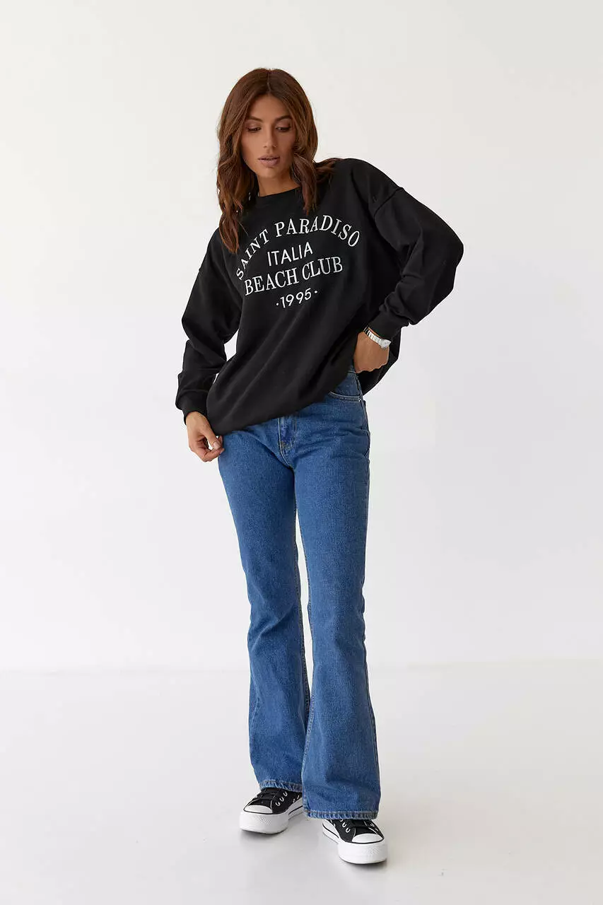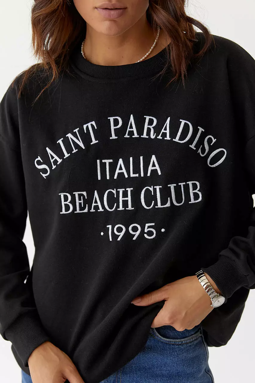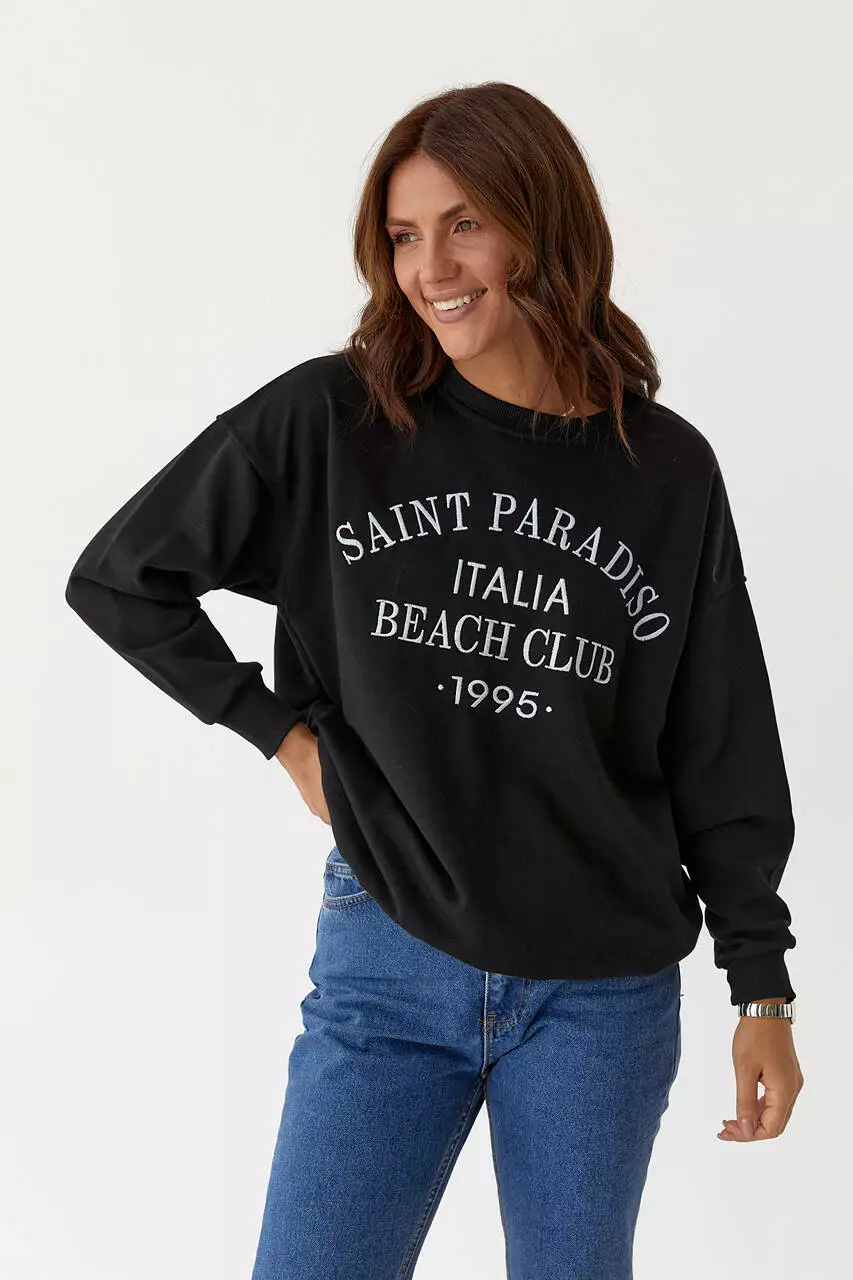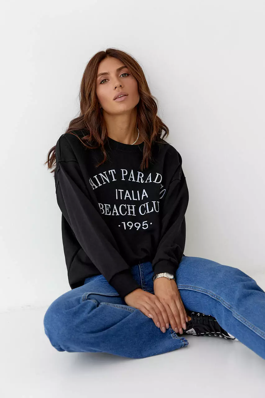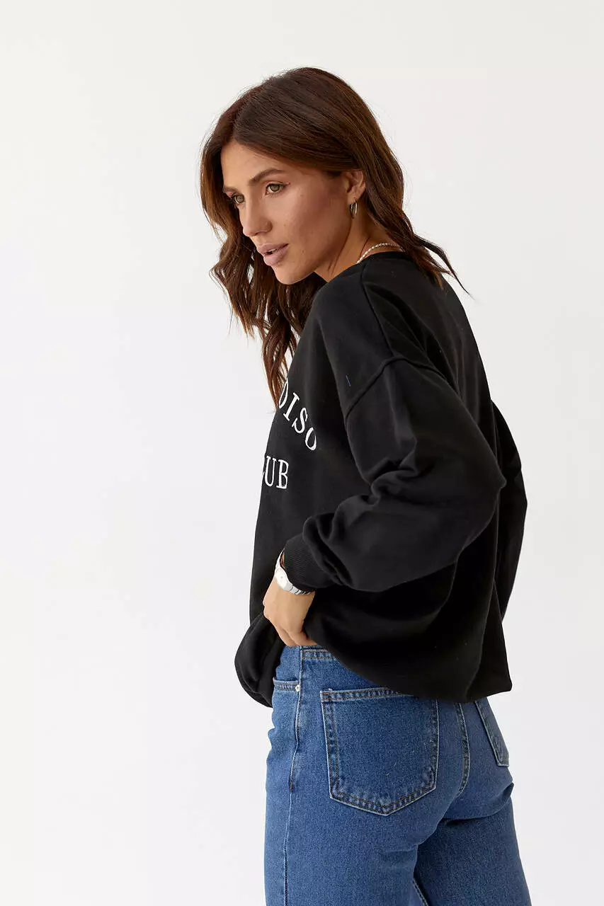 Женский трикотажный свитшот с вышитой надписью - черный цвет, L (есть размеры)