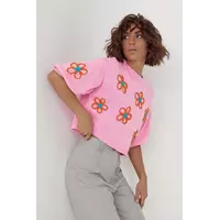 Ищете милую вязаную кофточку под брюки и юбки с высокой талией - выбирайте этот укороченный джемпер из машинной вязки от LUREX с цветочной аппликацией!