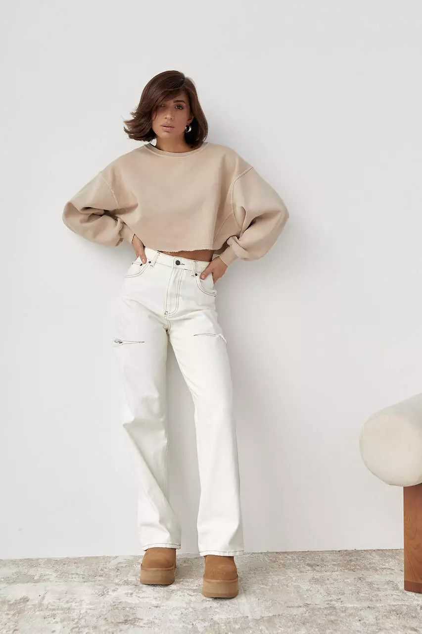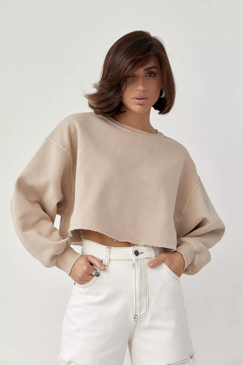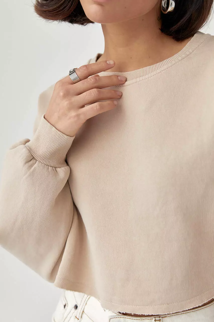 Женский укороченный свитшот с начесом - бежевый цвет, L (есть размеры)