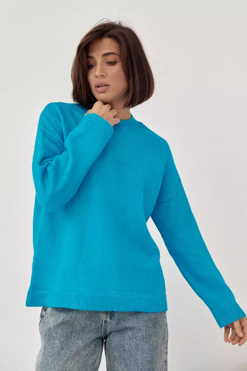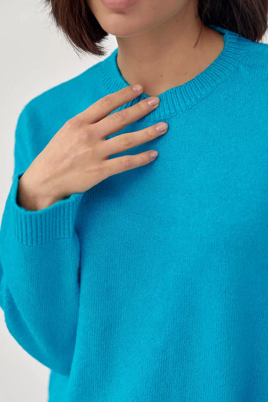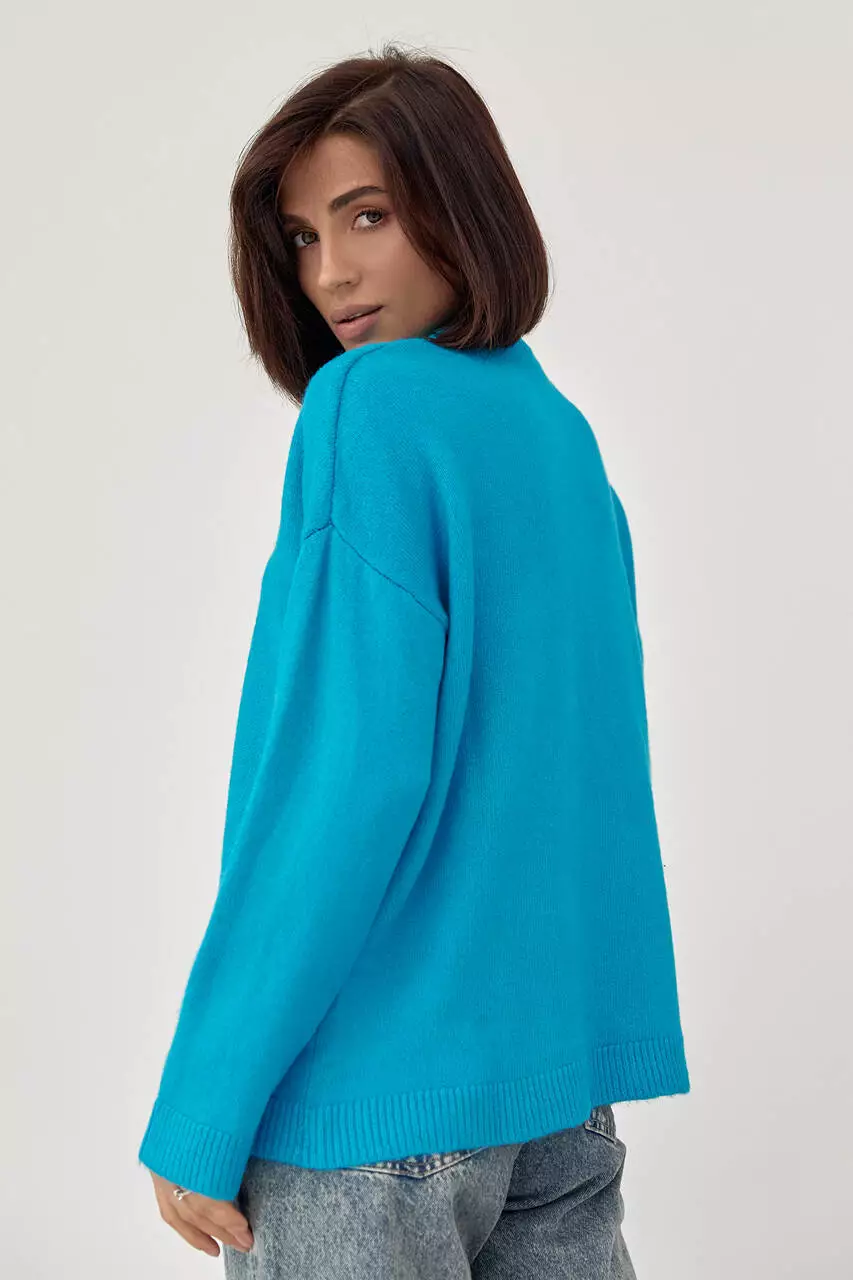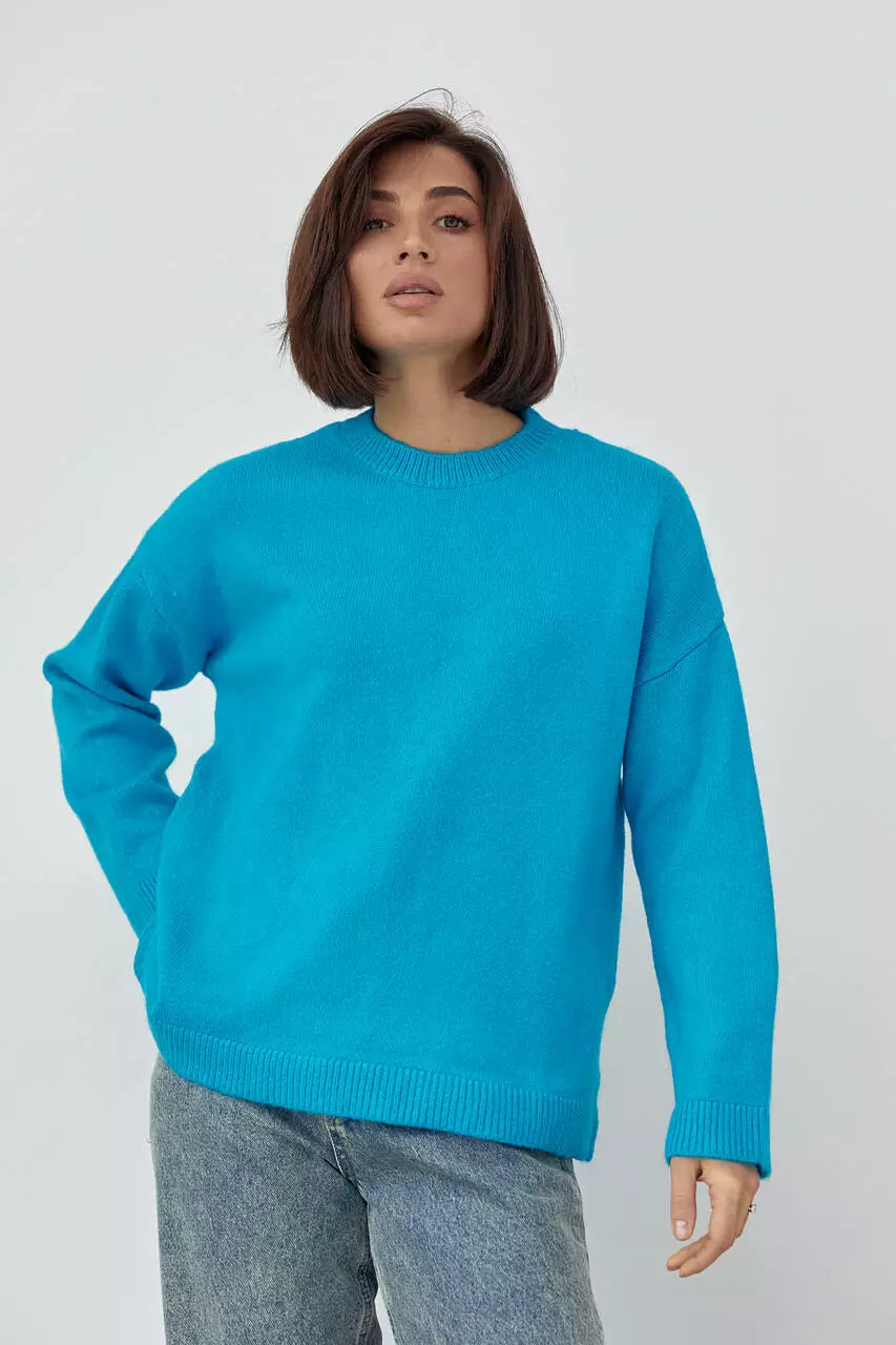 Женский вязаный джемпер оверсайз - голубой цвет, L (есть размеры)