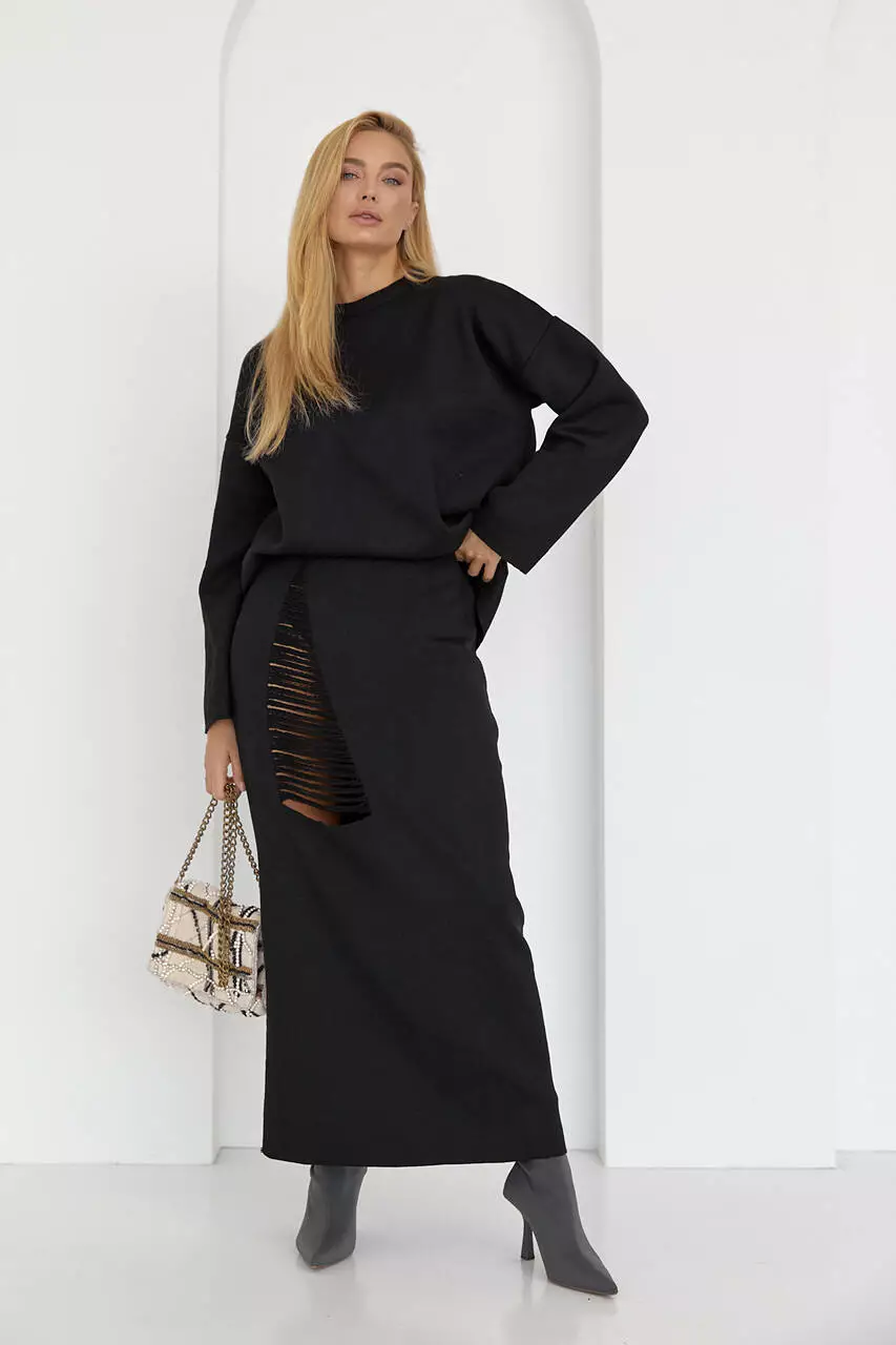 Оригинальный костюм-двойка, состоящий из свободного джемпера и