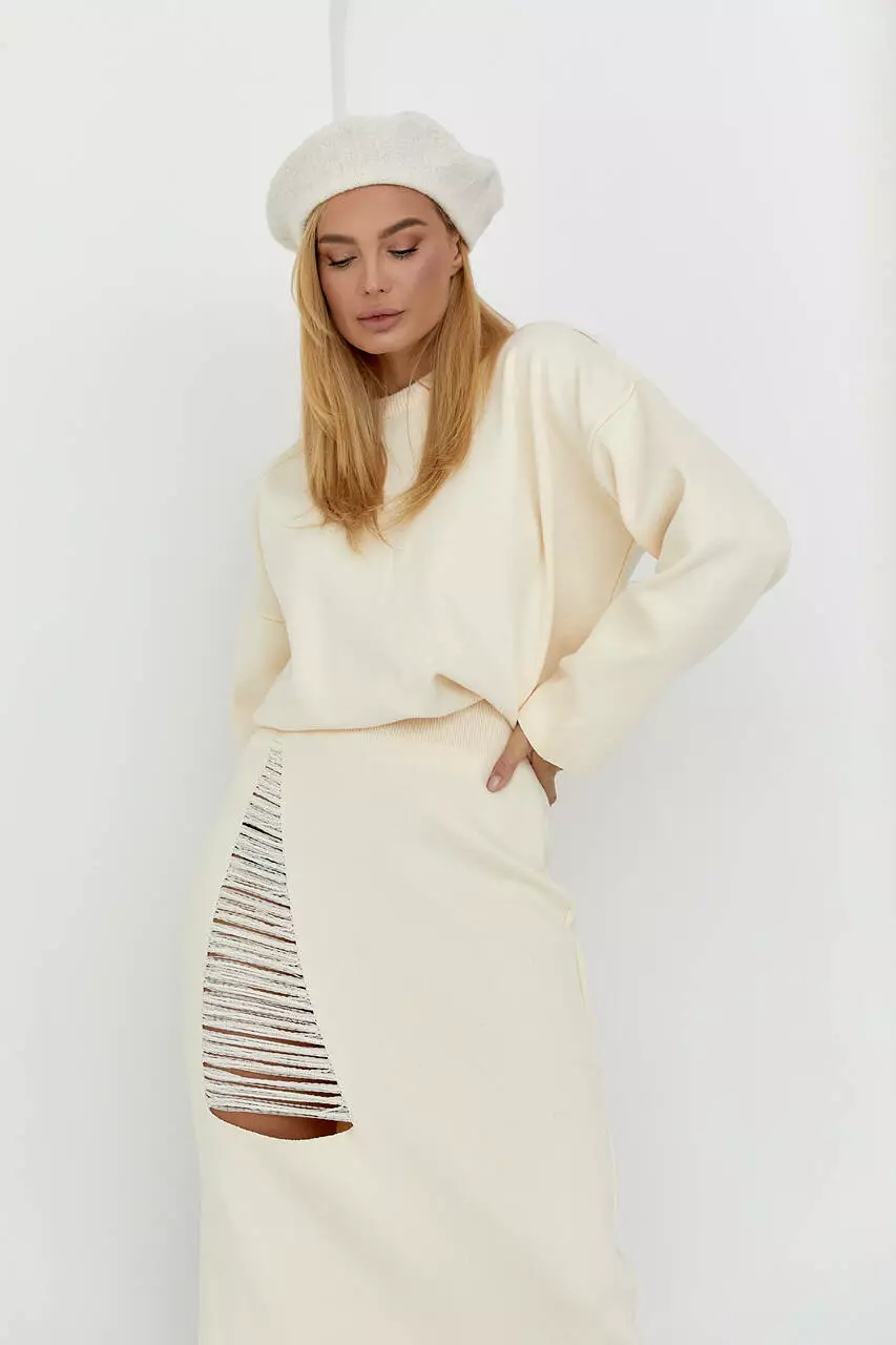 Оригинальный костюм-двойка, состоящий из свободного джемпера и