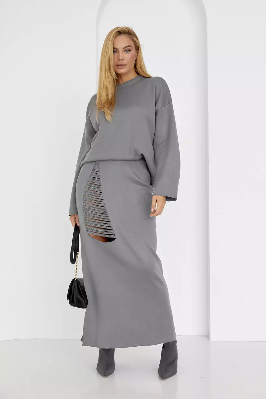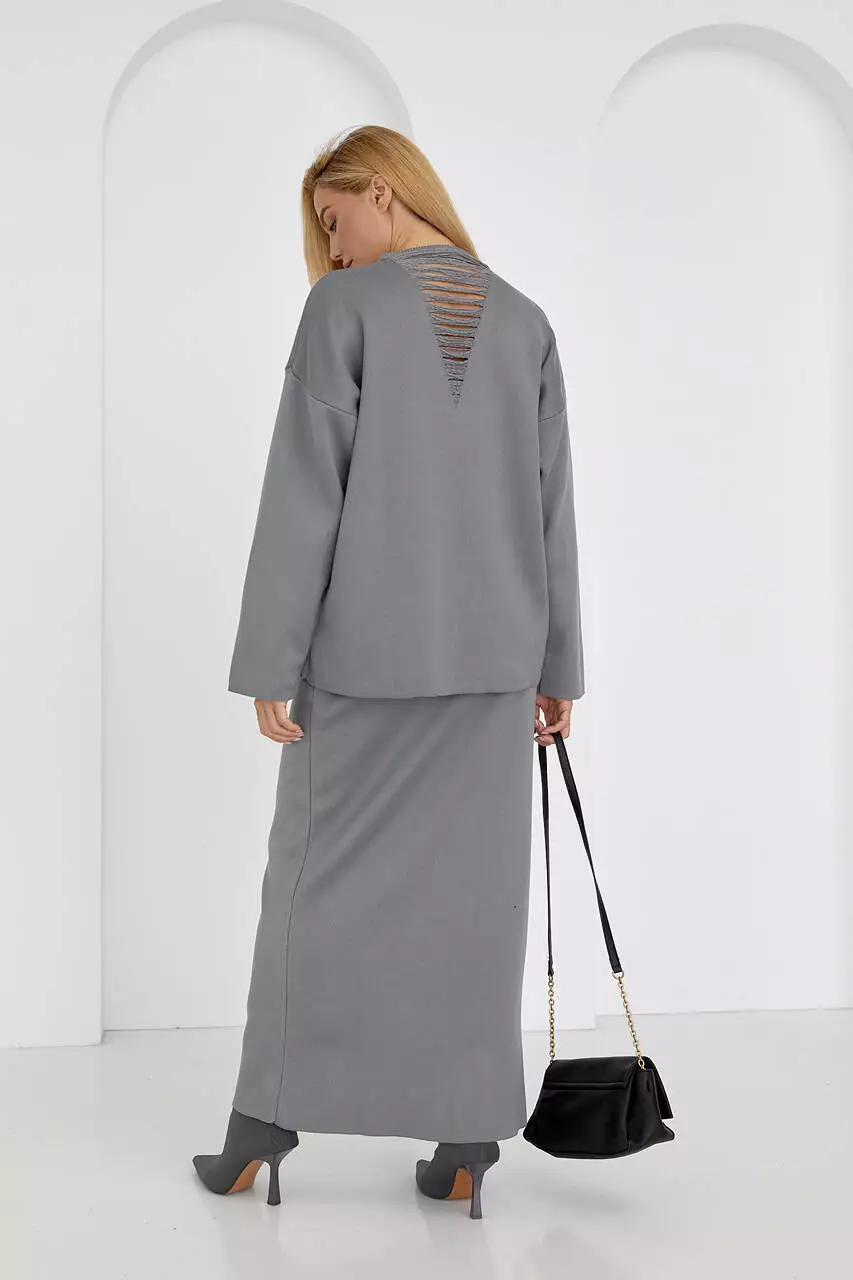 Оригинальный костюм-двойка, состоящий из свободного джемпера и