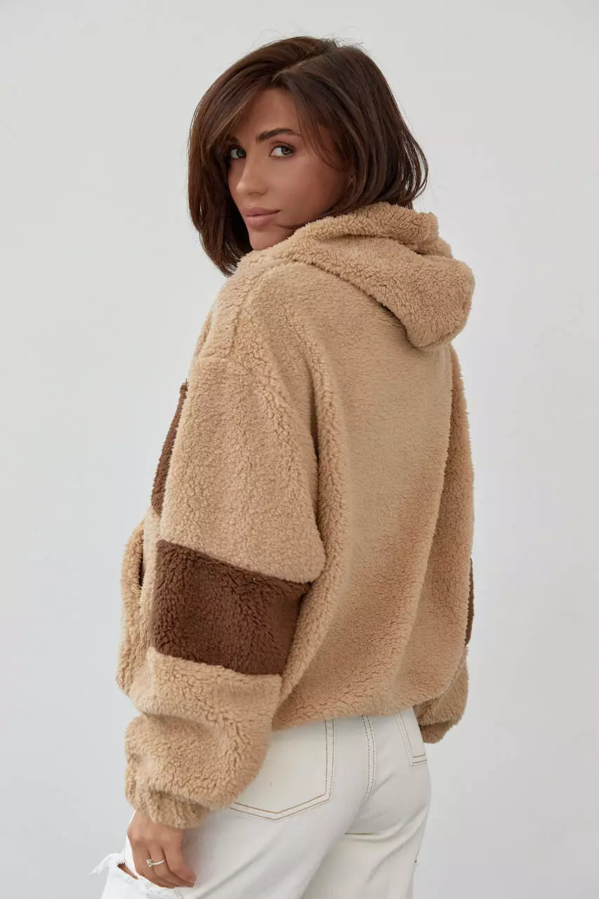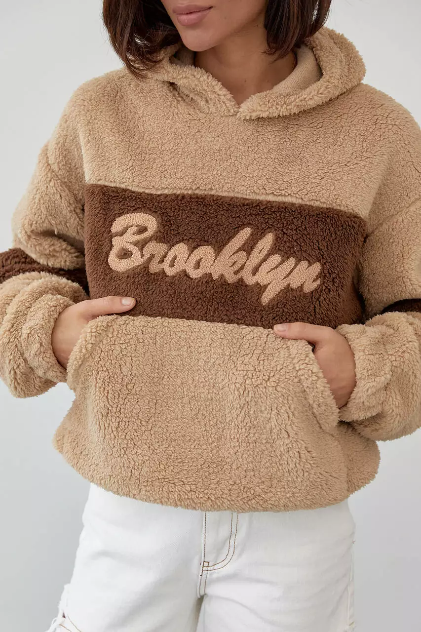 напоминает овчину, и мягкой гладкой изнанкой. Прямой низ изделия и