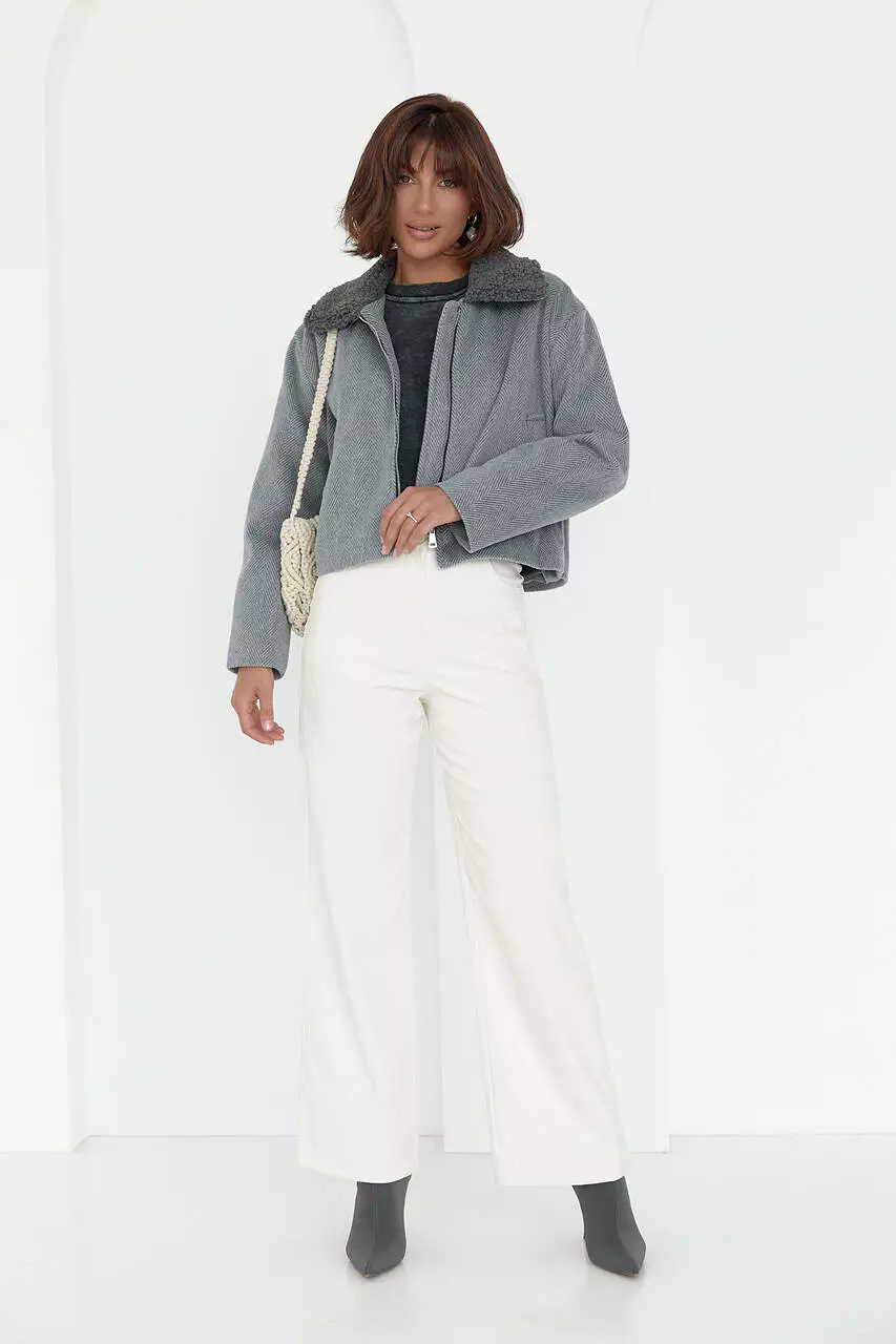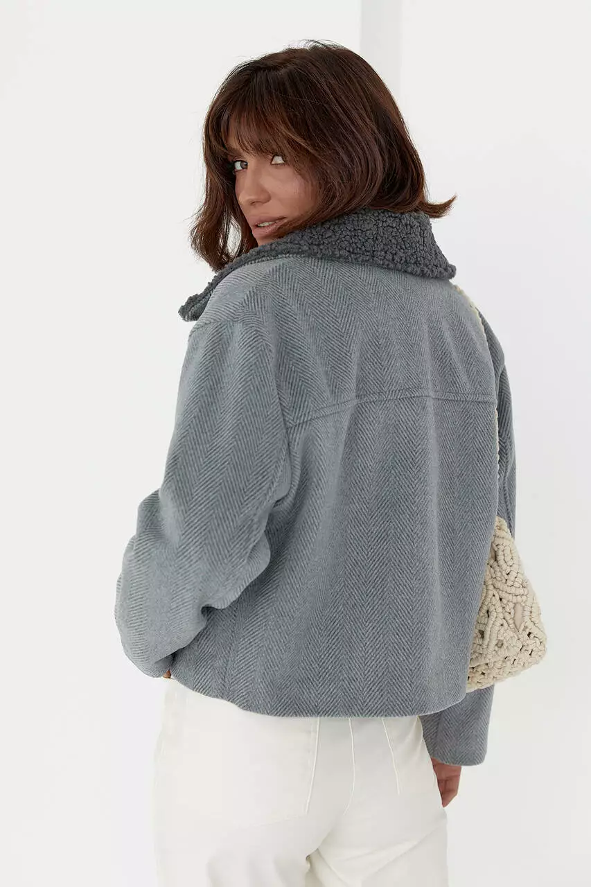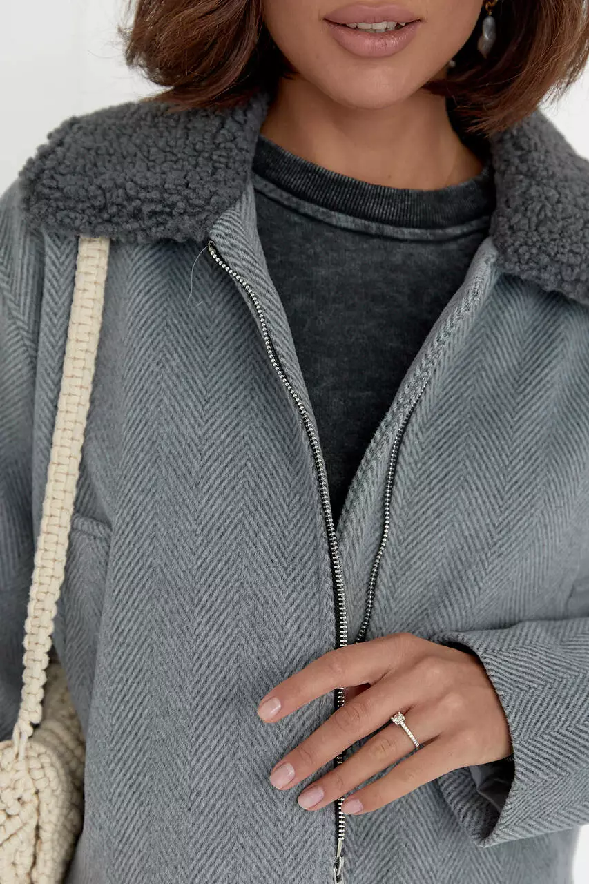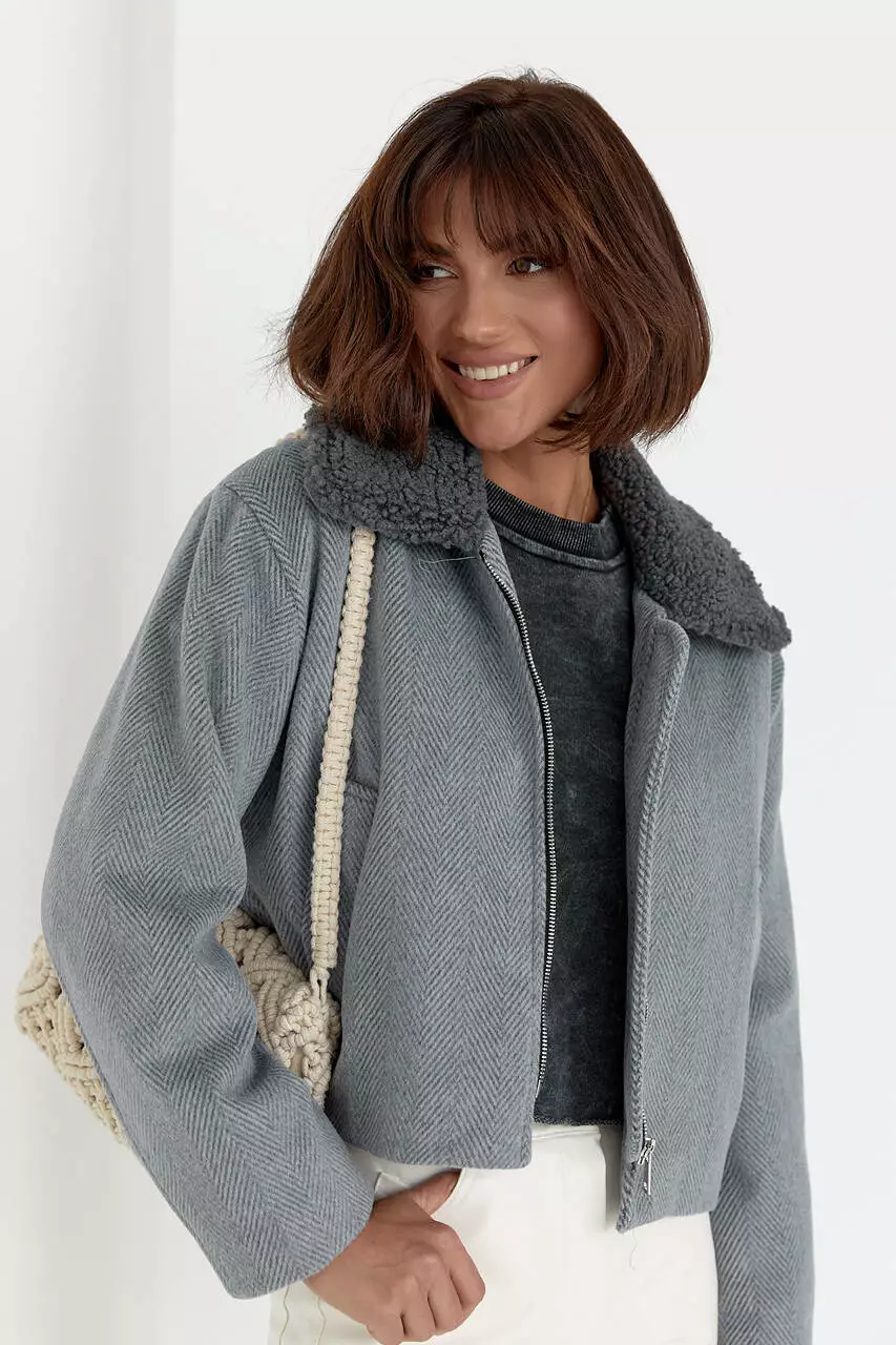 Женское короткое пальто в елочку - серый цвет, S (есть размеры)