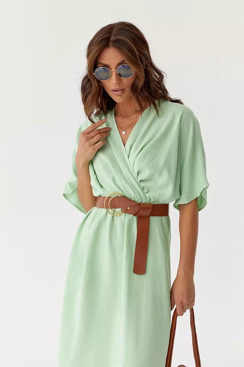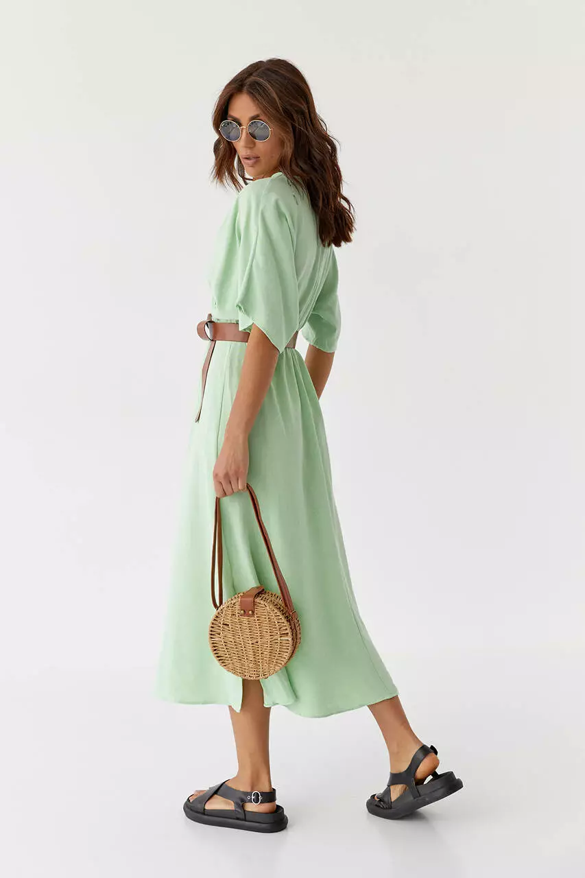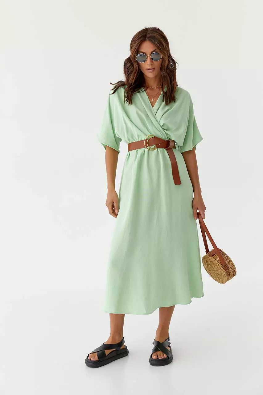 Нежность и легкость в каждом движении тебе подарит это стильное однотонное платье длинны миди.