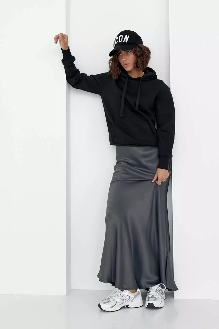 Эта модель с начесом выполнена в стиле оверсайз с опущенной